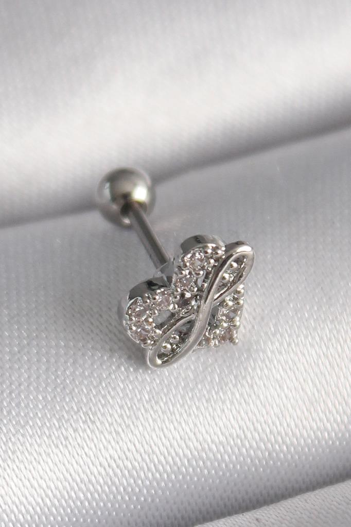 316L Çelik Gümüş Renk Zirkon Taşlı Sonsuzluk Detay Tragus Piercing - TJ-PR1249