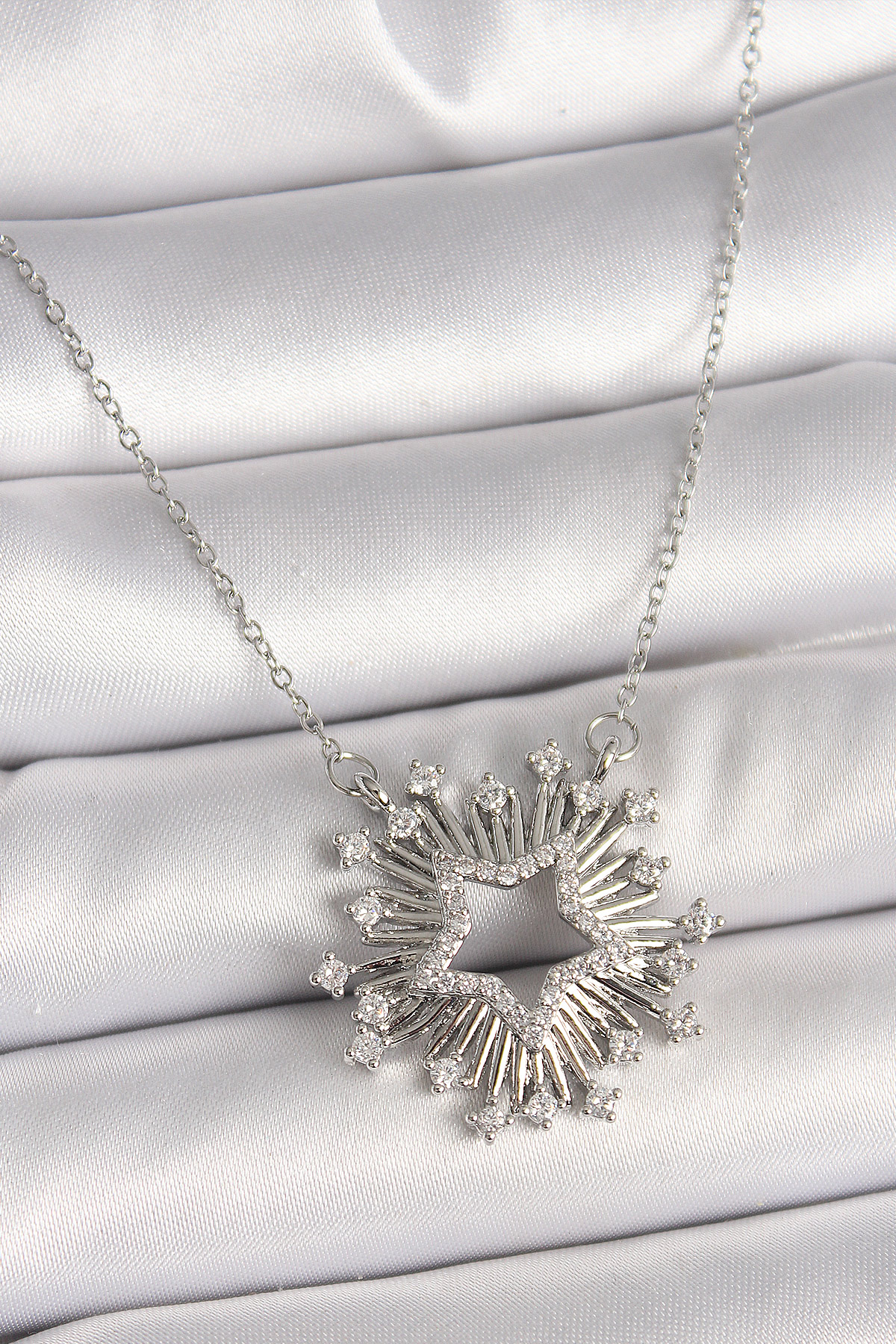 316L Çelik Gümüş Renk Zirkon Taşlı Yıldız Model Kadın Kolye - TJ-BKO9921