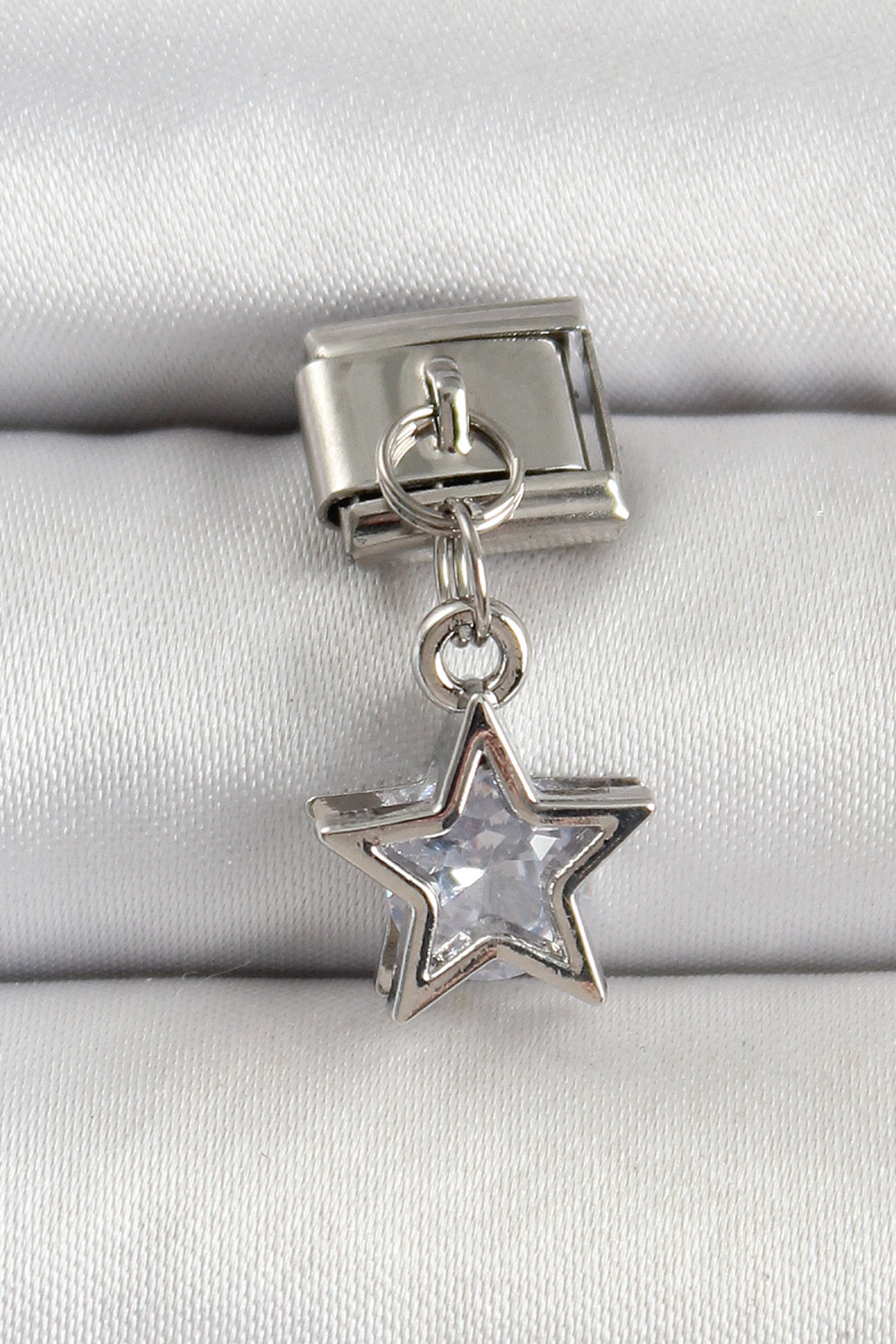 316L Çelik Gümüş Renk Zirkon Taşlı Yıldız Model Nomination Charm - TJ-BC1510