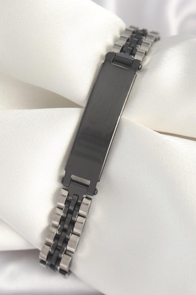 316L Çelik Gümüş Siyah Renk Zincir Künye Model Erkek Bileklik - TJ-EB3723