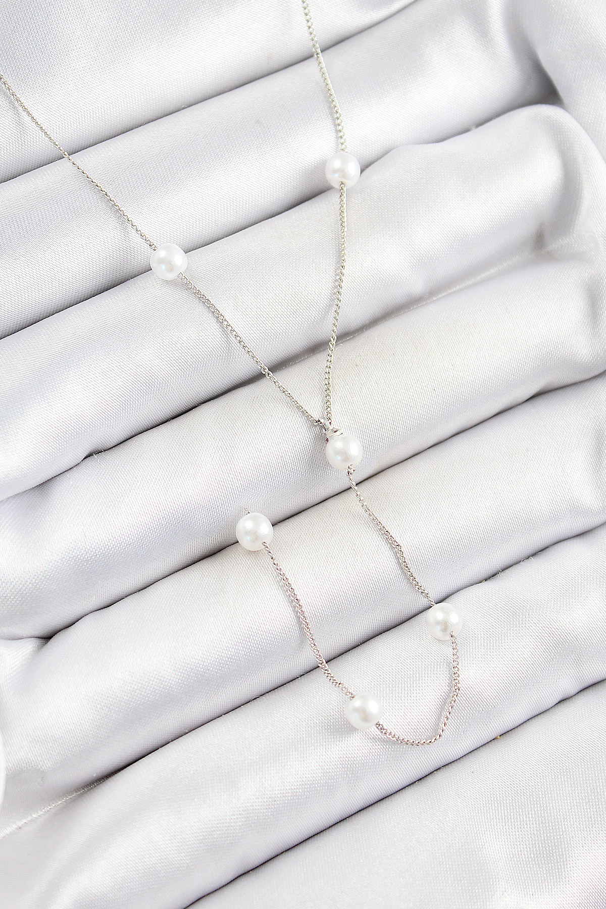 316L Çelik İnci Figürlü Y Model Gümüş Renk Kadın Kolye - TJ-BKO10337