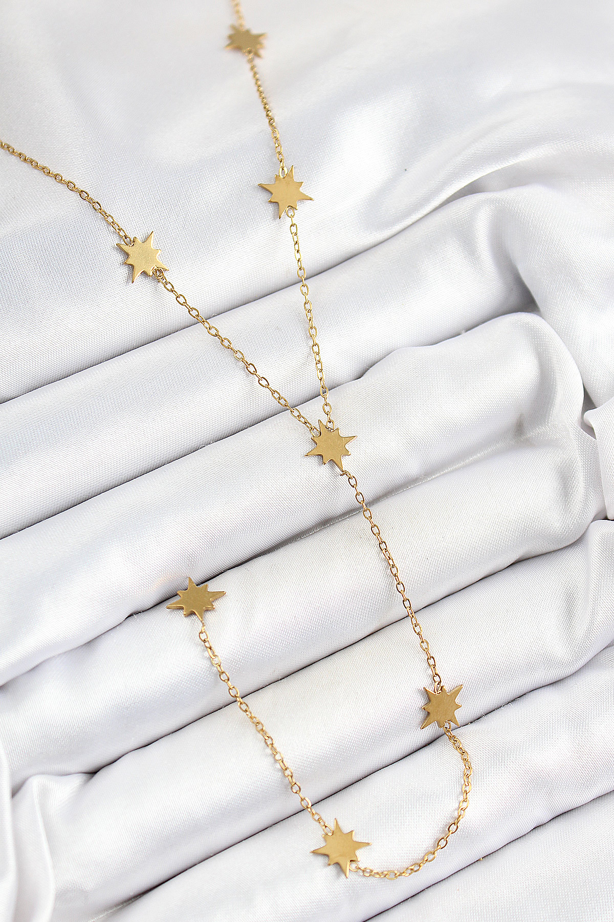 316L Çelik Kutup Yıldızı Figürlü Y Model Gold Renk Kadın Kolye - TJ-BKO10333