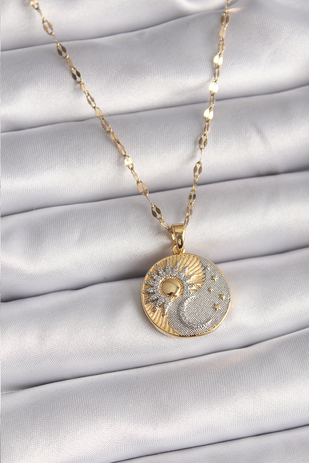 316L Çelik Mix Renk Zincir Zirkon Taşlı Gün Doğumu/Batımı Madalyon Model Kadın Kolye - TJ-BKO9514