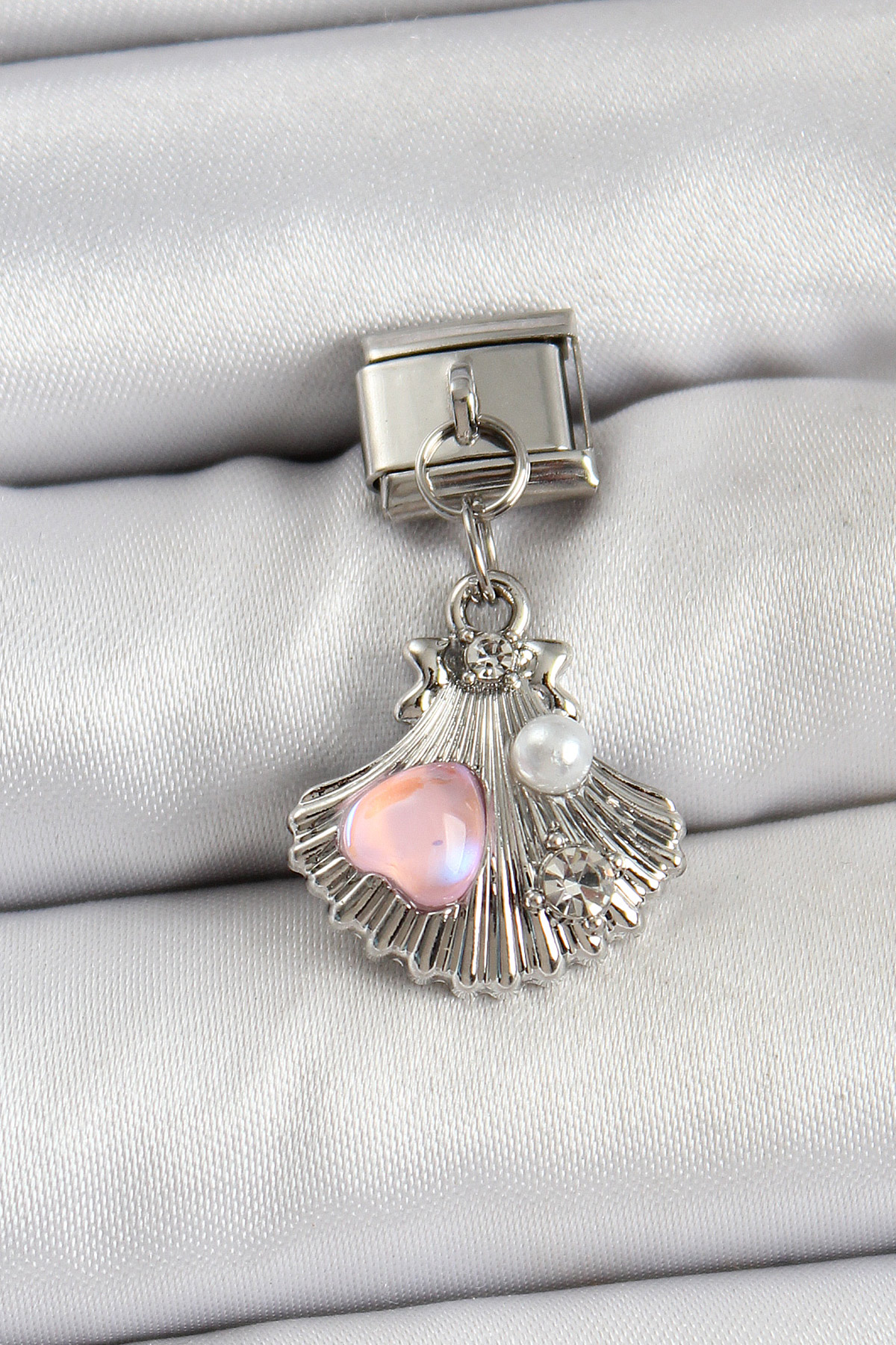 316L Çelik Sallantılı İnci Detaylı İstiridye Model Gümüş Renk Nomination Charm - TJ-BC1464
