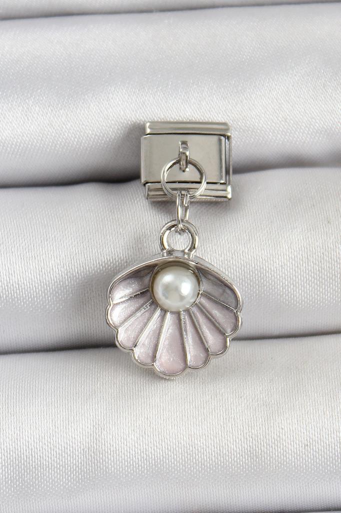 316L Çelik Sallantılı İnci Detaylı İstiridye Model Gümüş Renk Nomination Charm - BC1471