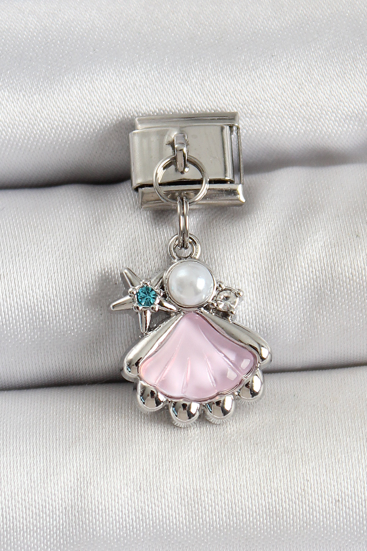 316L Çelik Sallantılı İnci Detaylı Zirkon Taşlı İstiridye Model Gümüş Renk Nomination Charm - TJ-BC1480