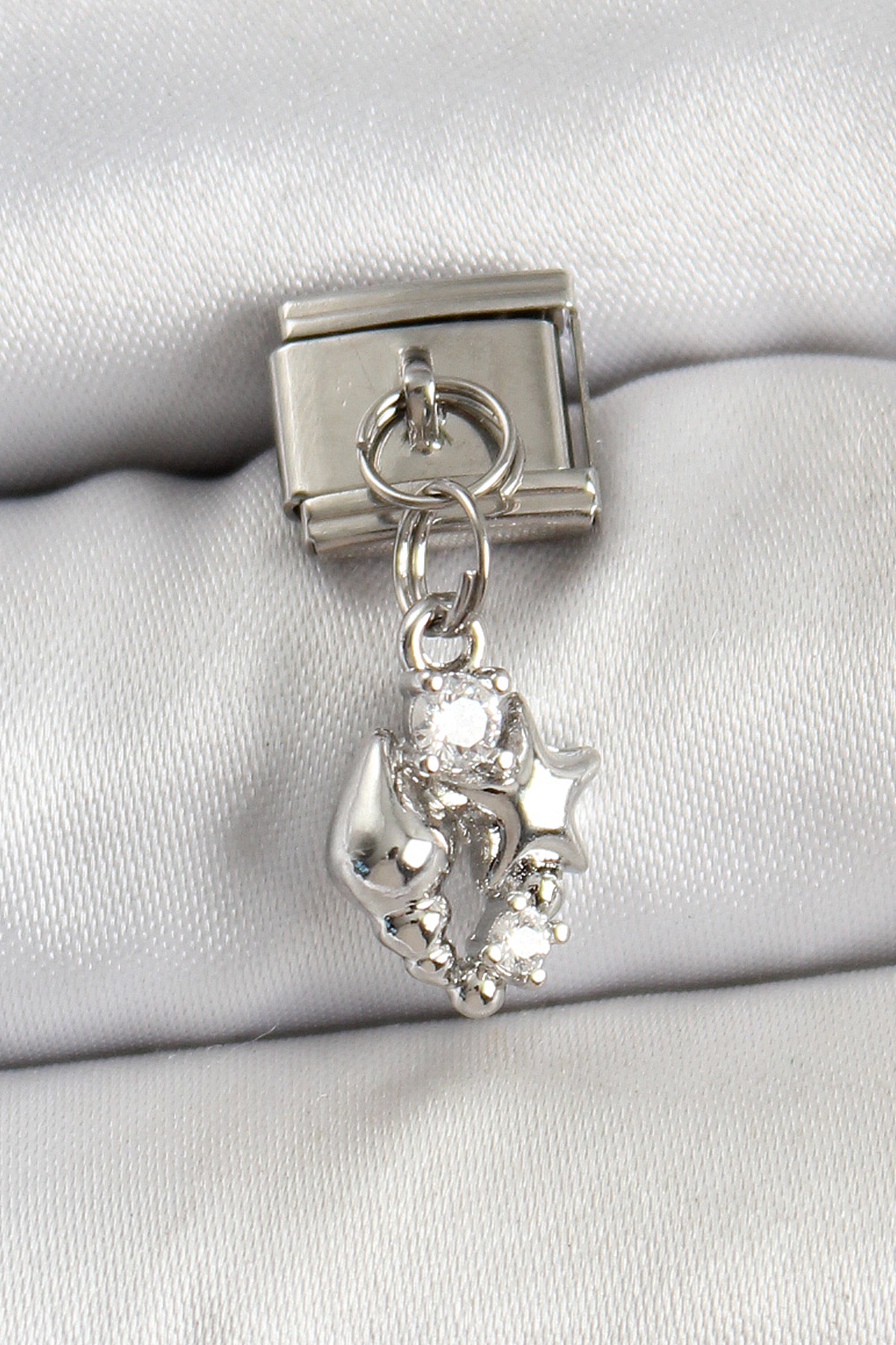316L Çelik Sallantılı Zirkon Taşlı Deniz Kabuğu Ve Yıldız Model Gümüş Renk Nomination Charm - TJ-BC1459
