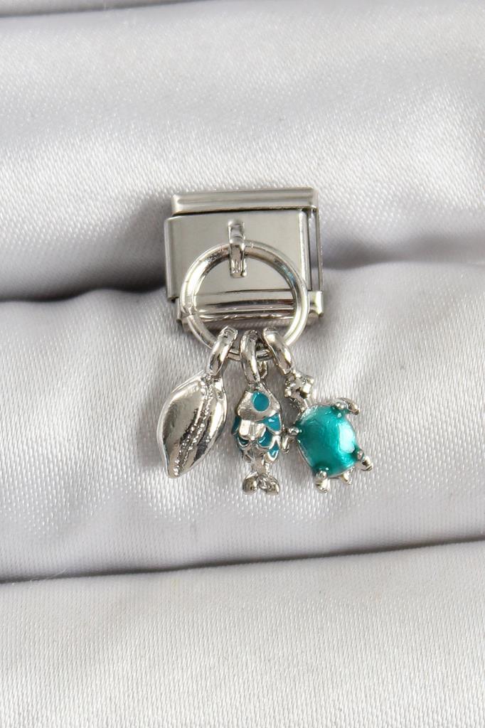 316L Çelik Sallantılı Zirkon Taşlı Deniz Temalı Çoklu Model Gümüş Renk Nomination Charm - BC1479