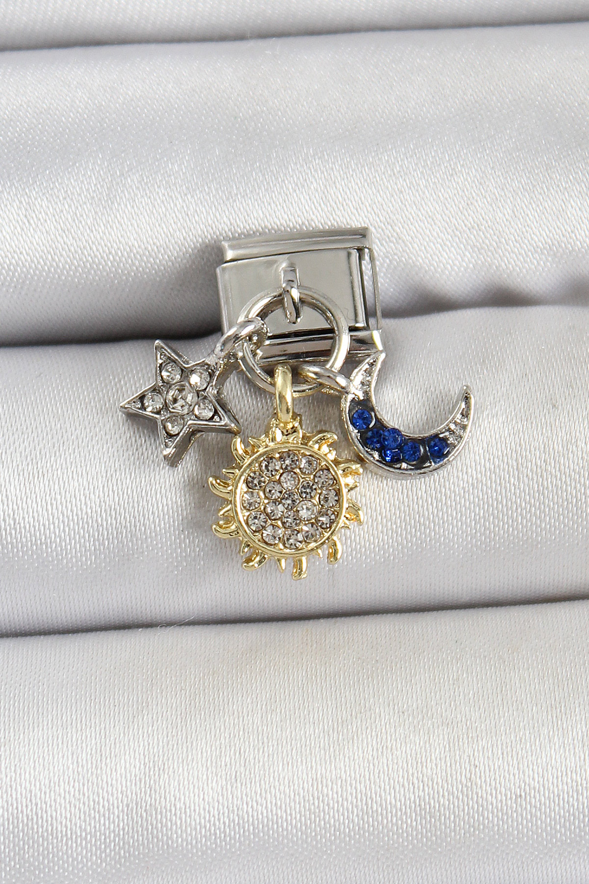 316L Çelik Sallantılı Zirkon Taşlı Güneş Ay Ve Yıldız Çoklu Model Gümüş Renk Nomination Charm - TJ-BC1484