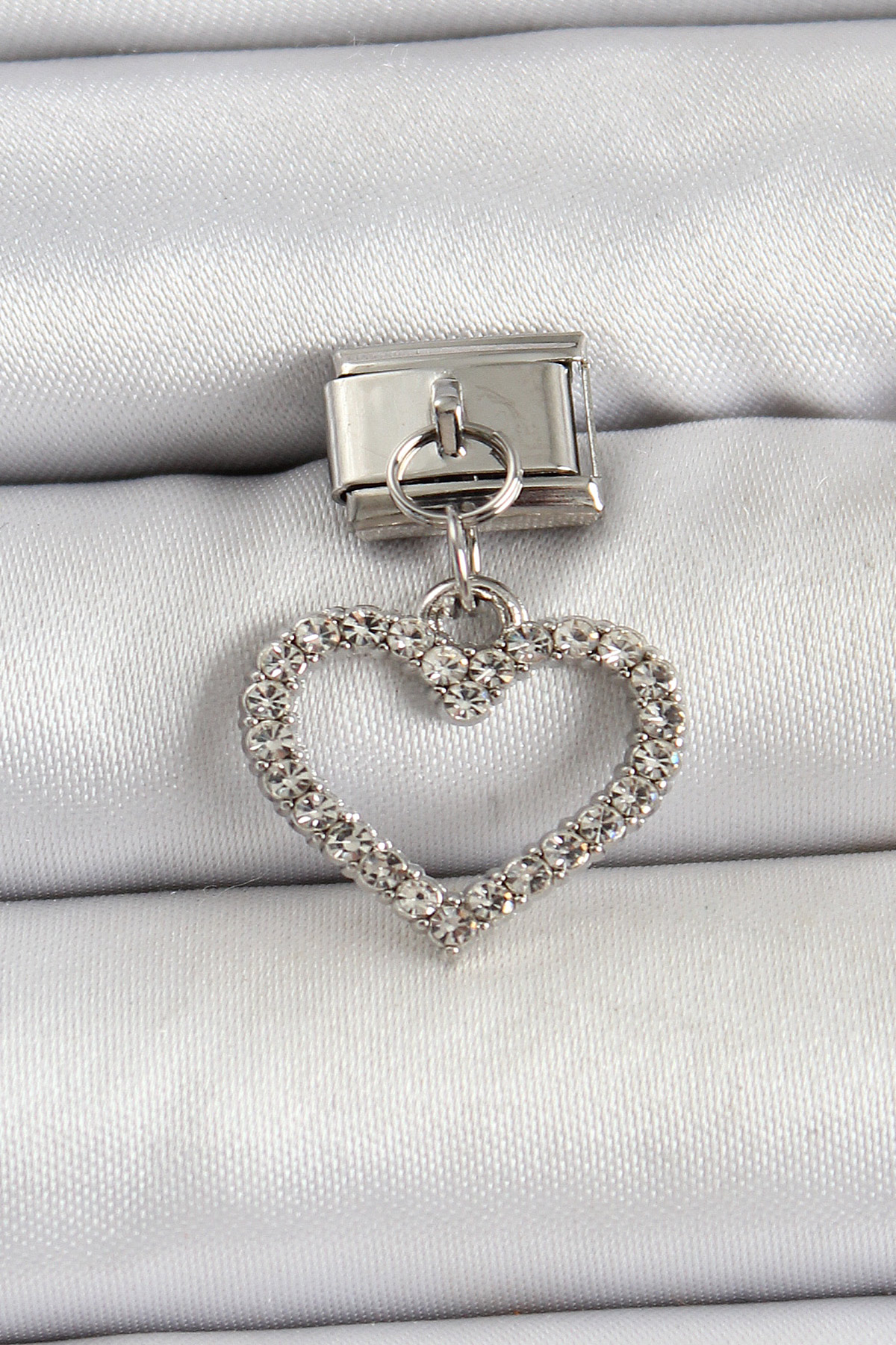 316L Çelik Sallantılı Zirkon Taşlı Kalp Model Gümüş Renk Nomination Charm - TJ-BC1483