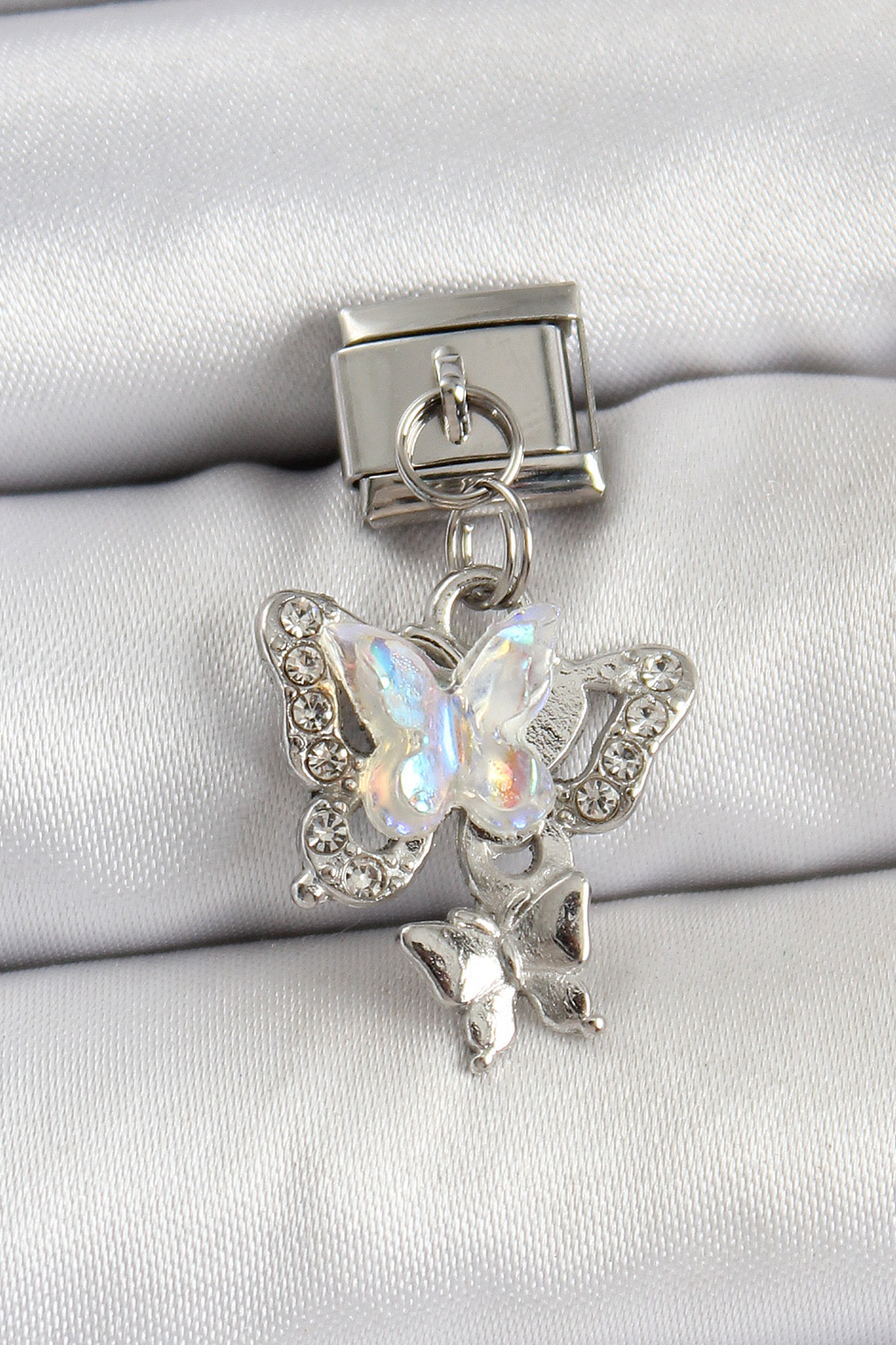 316L Çelik Sallantılı Zirkon Taşlı Kelebek Model Gümüş Renk Nomination Charm - TJ-BC1458