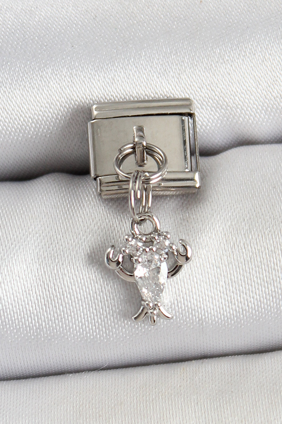 316L Çelik Sallantılı Zirkon Taşlı Yengeç Model Gümüş Renk Nomination Charm - TJ-BC1449
