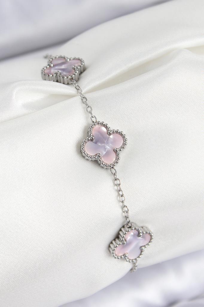 316L Çelik Sedefli Lila Gümüş Renk Yonca Kadın Bileklik - BB7673