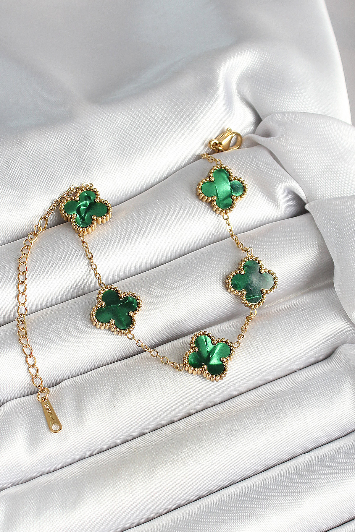 316L Çelik Sedefli Zümrüt Yeşil Gold Renk Yonca Kadın Bileklik - TJ-BB6968