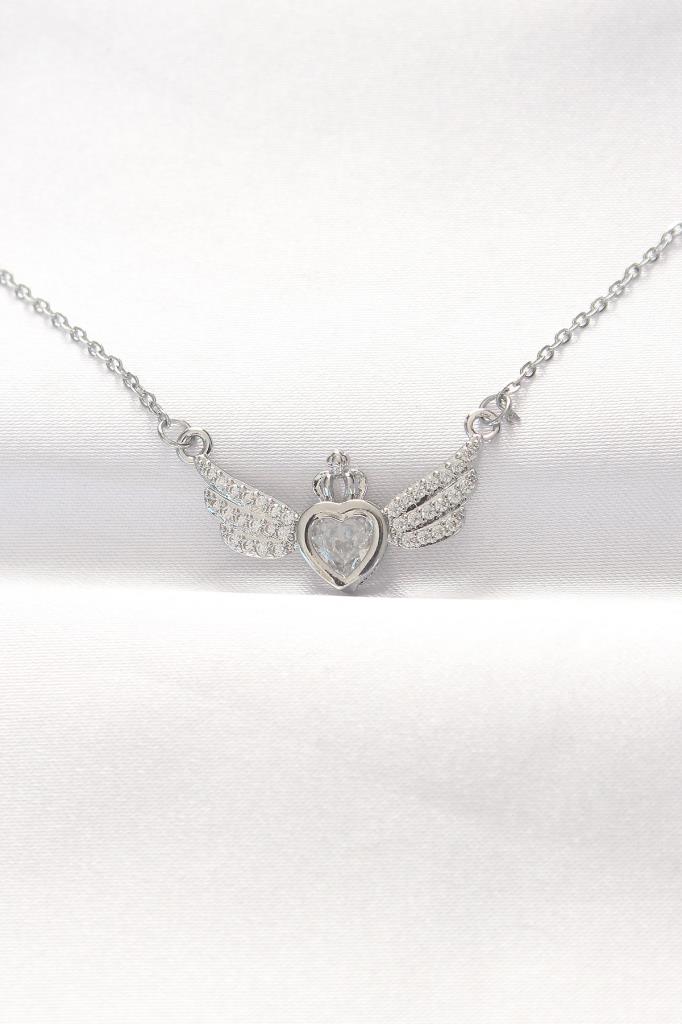316L Çelik Silver Renk Zirkon Taşlı Kalpli Kanat Kolye - TJ-BKO8515