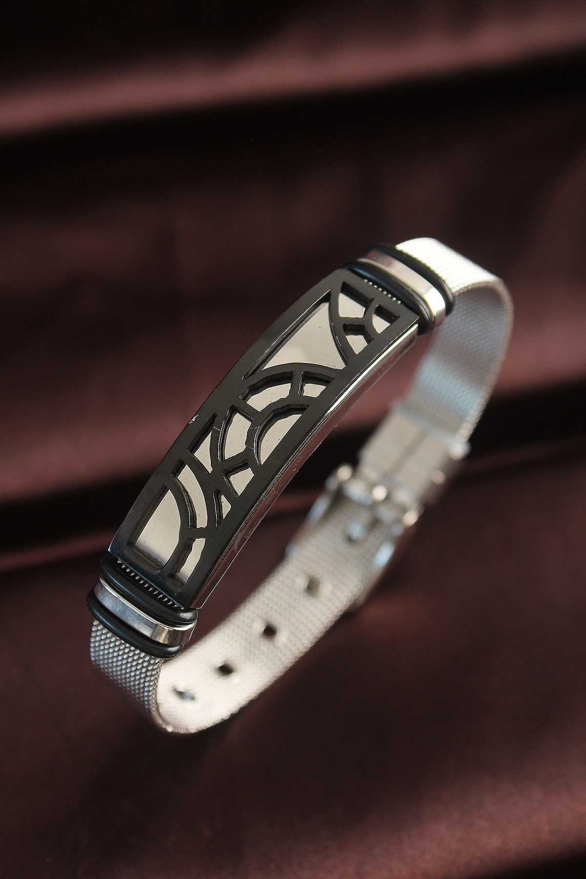 316L Çelik Siyah Desenli Ayarlanabilir Hasır Kordonlu Bileklik - TJ-EB3636