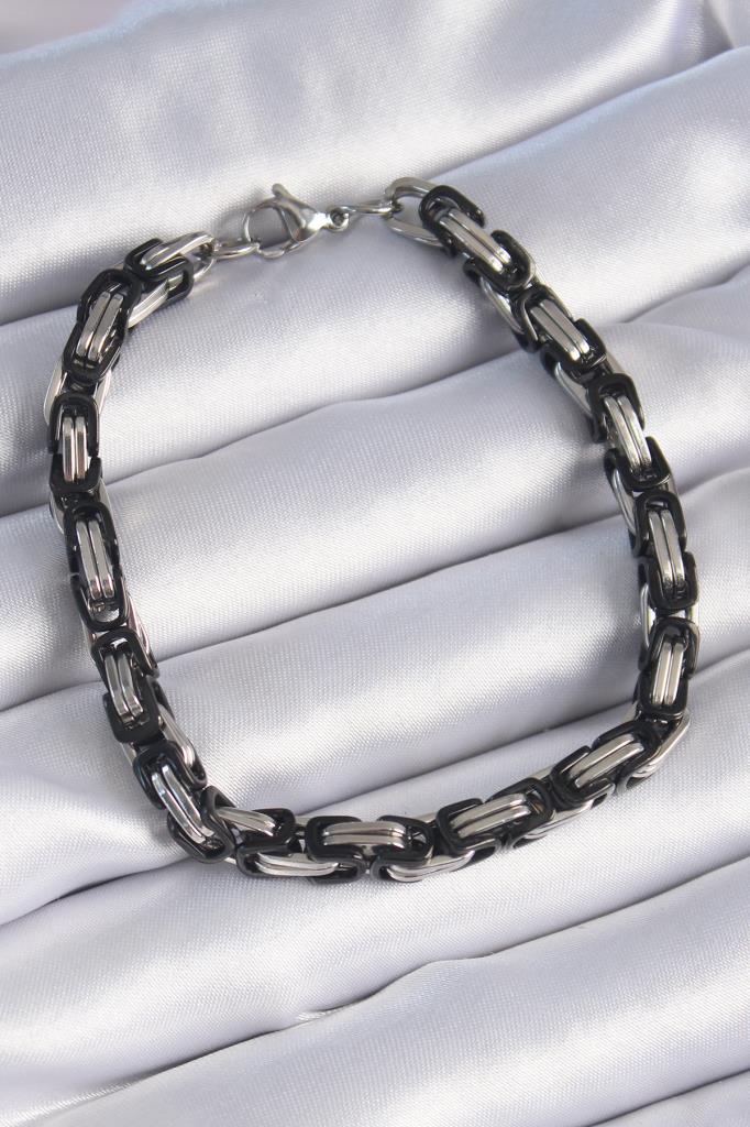316L Çelik Siyah Gümüş Renk Kral Zincir Model Erkek Bileklik - TJ-EB3694