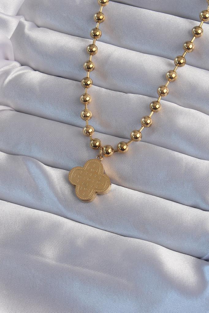 316L Çelik Top Zincirli Gold Renk İşlemeli Yonca Model Kolye - TJ-BKO8988
