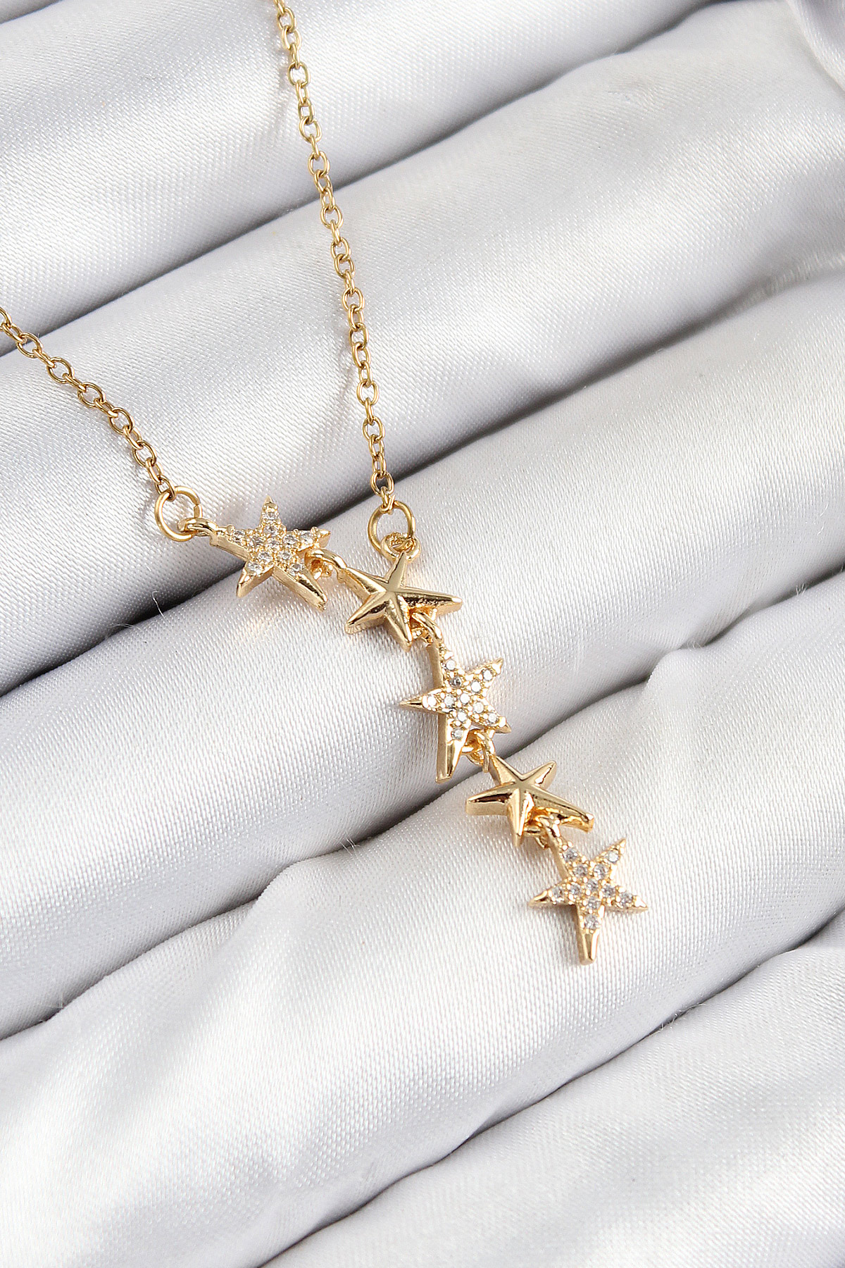 316L Çelik Yıldız Model Gold Renk Kadın Kolye - TJ-BKO10476