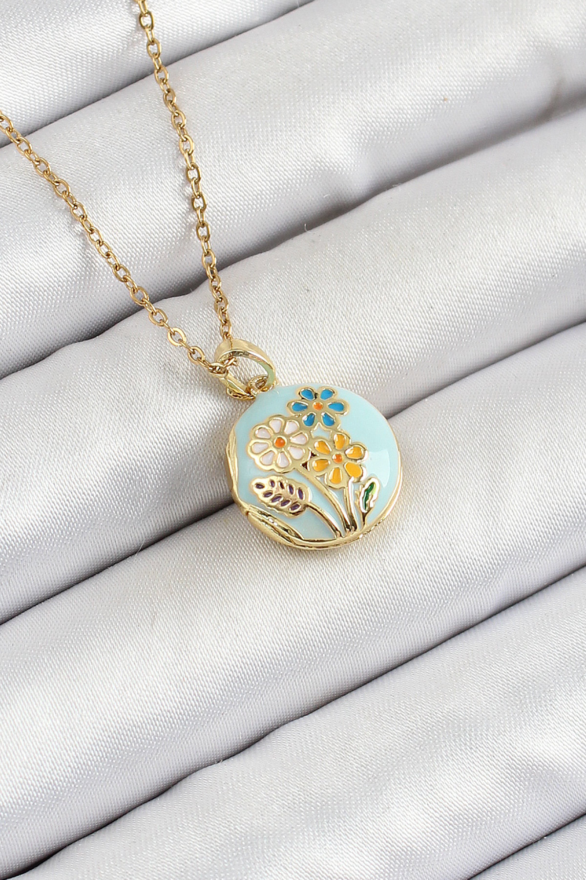 316L Çelik Zincir Açılabilir Sanatsal Vintage Çiçek Model Gold Renk Kadın Kolye - TJ-BKO10257