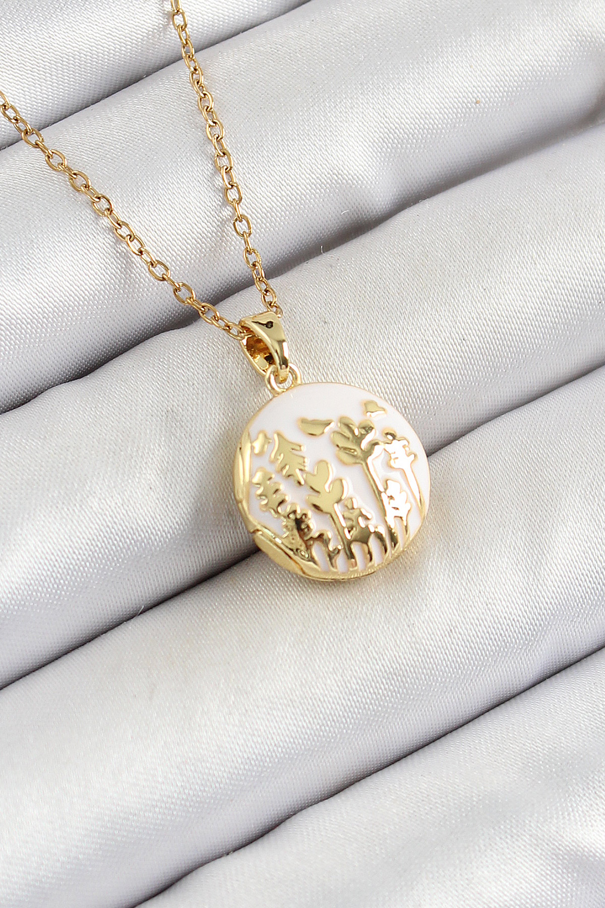 316L Çelik Zincir Açılabilir Sanatsal Vintage Çiçek Model Gold Renk Kadın Kolye - TJ-BKO10259