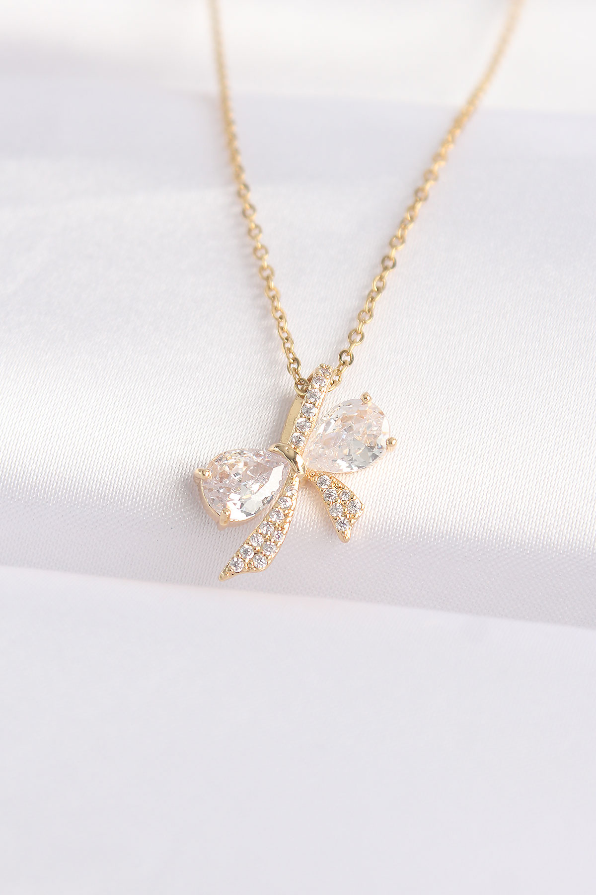 316L Çelik Zincir Altın Renk Zirkon Taşlı Fiyonk Kolye - TJ-BKO8597