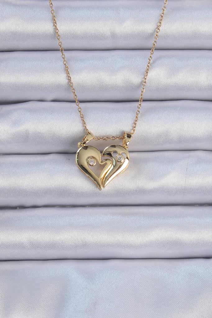 316L Çelik Zincir Altın Renk Zirkon Taşlı Mıknatıslı Kalp Kolye - TJ-BKO9081