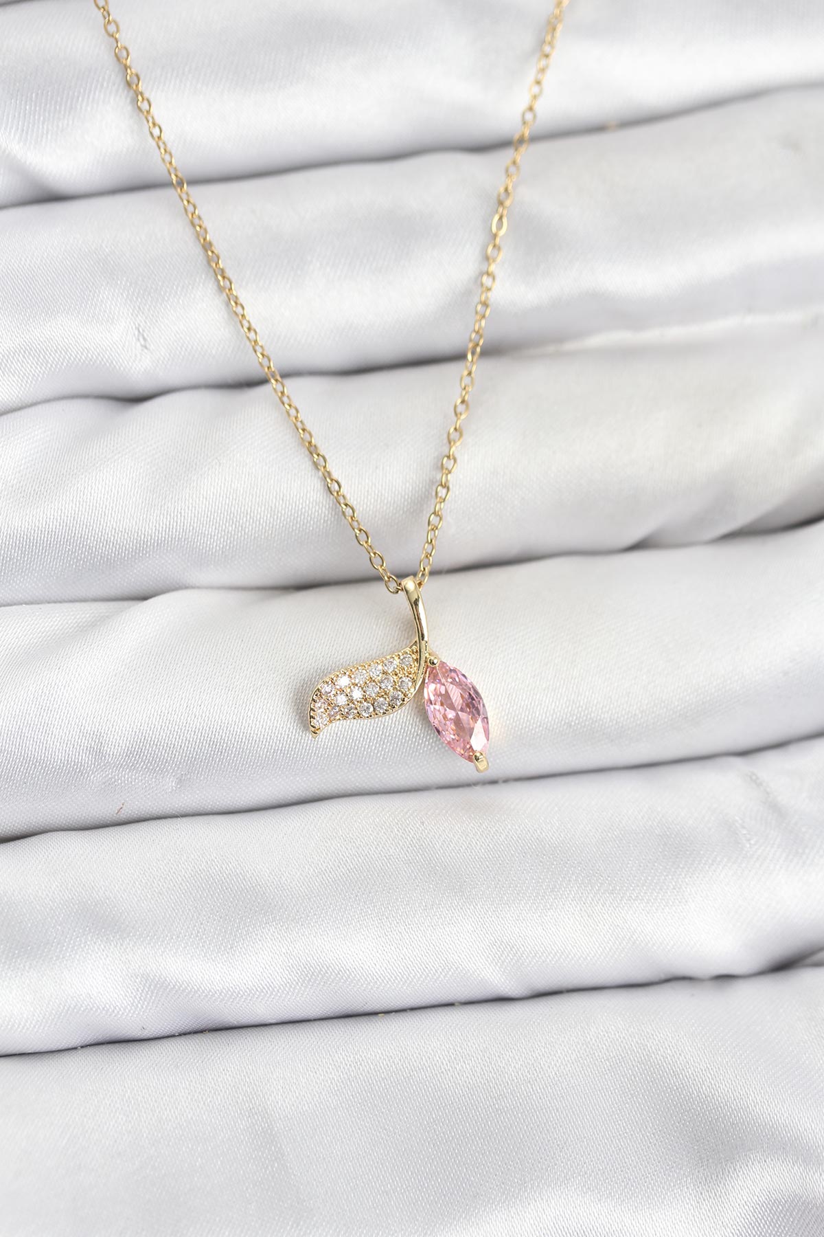 316L Çelik Zincir Gold Renk Balık Kuyruğu Model Zirkon Taşlı Kadın Kolye - TJ-BKO10857