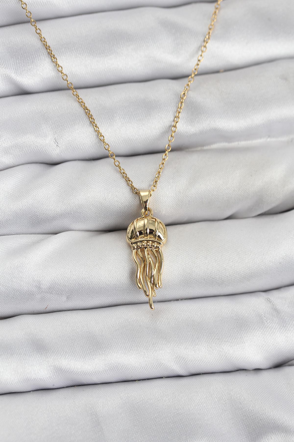 316L Çelik Zincir Gold Renk Deniz Anası Model Zirkon Taşlı Kadın Kolye - TJ-BKO10842