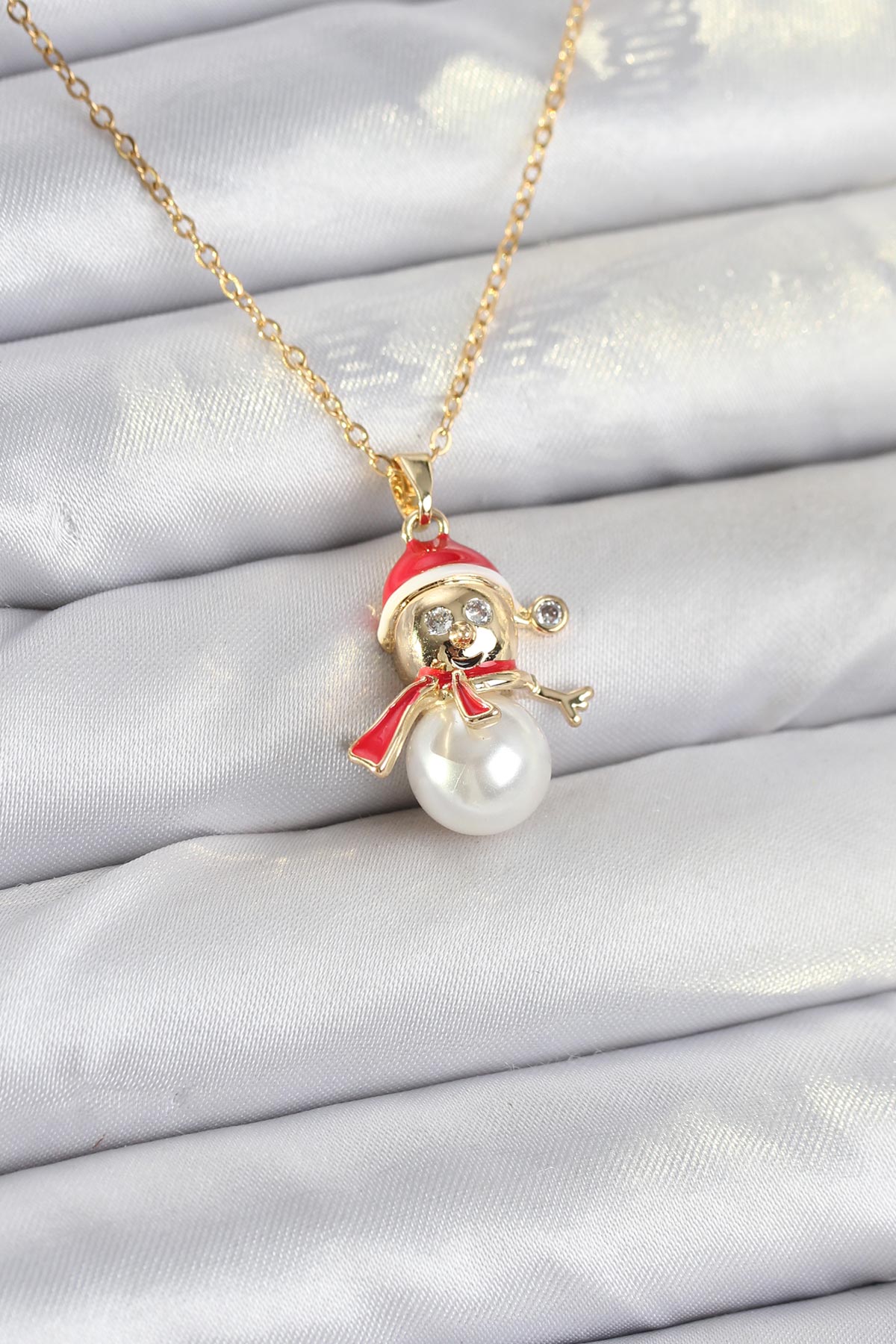316L Çelik Zincir Gold Renk Kardan Adam Model Yılbaşı Temalı Kadın Kolye - TJ-BKO10702