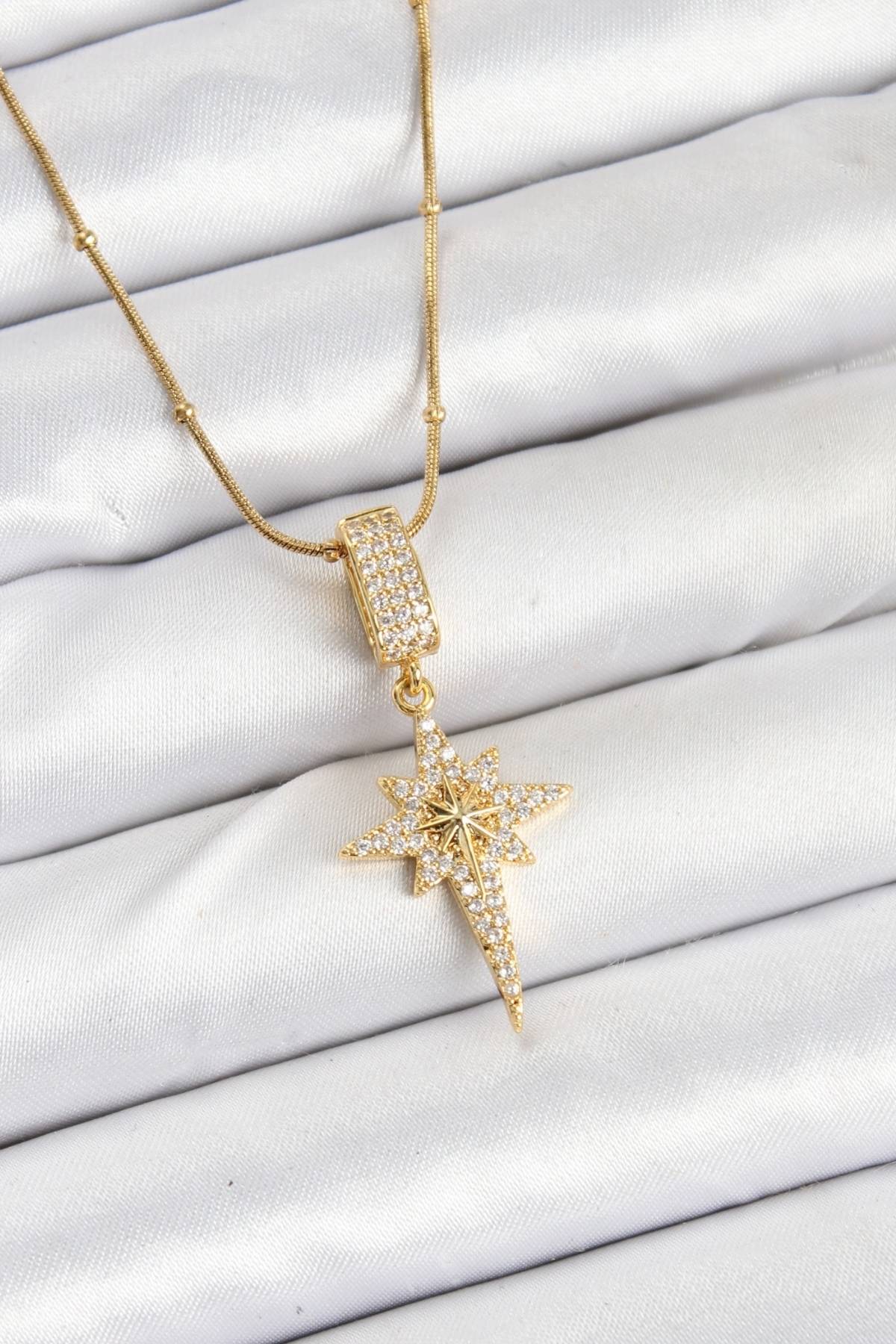 316L Çelik Zincir Gold Renk Kutup Yıldızı Kadın Kolye - TJ-BKO10559