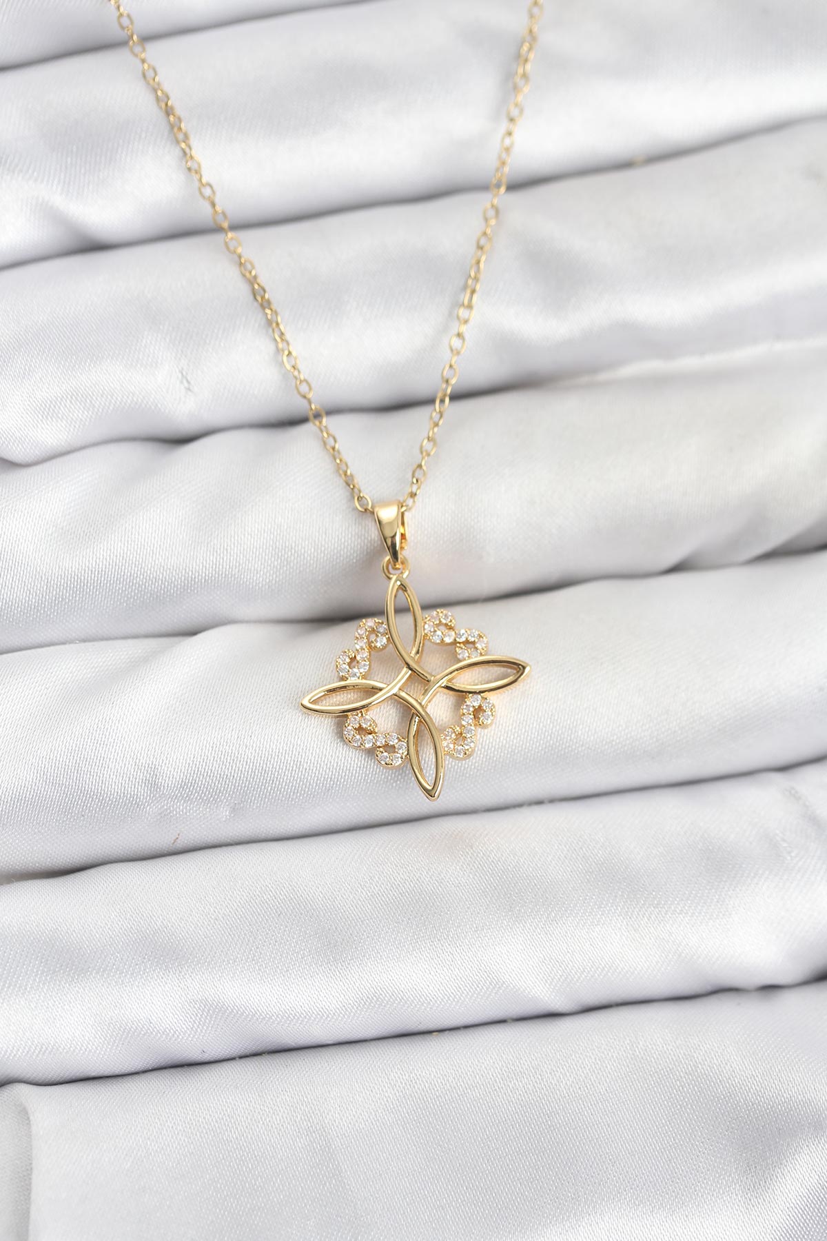 316L Çelik Zincir Gold Renk Sonsuzluk Model Zirkon Taşlı Kadın Kolye - TJ-BKO10873