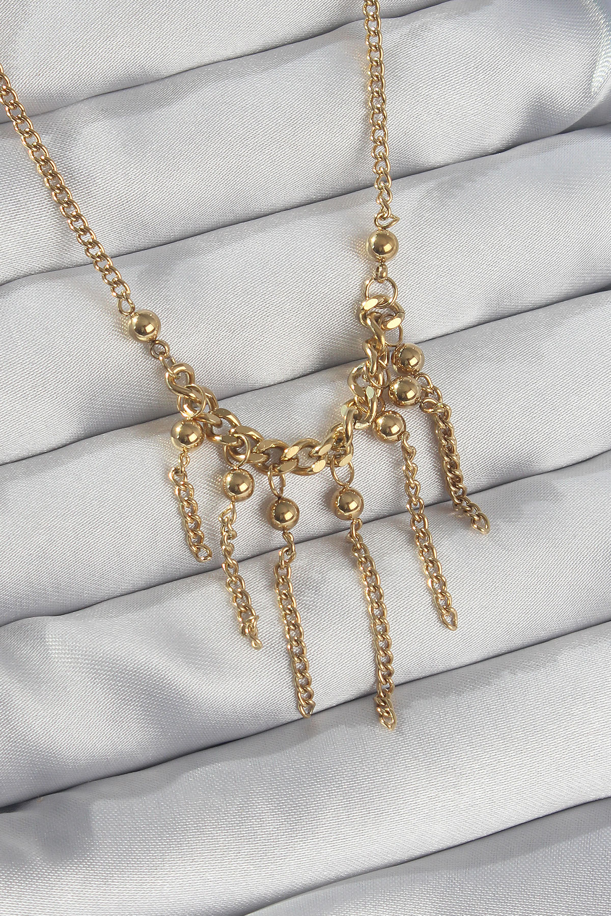 316L Çelik Zincir Gold Renk Topçuk Detay Sallantılı Zincir Kolye - TJ-BKO8911