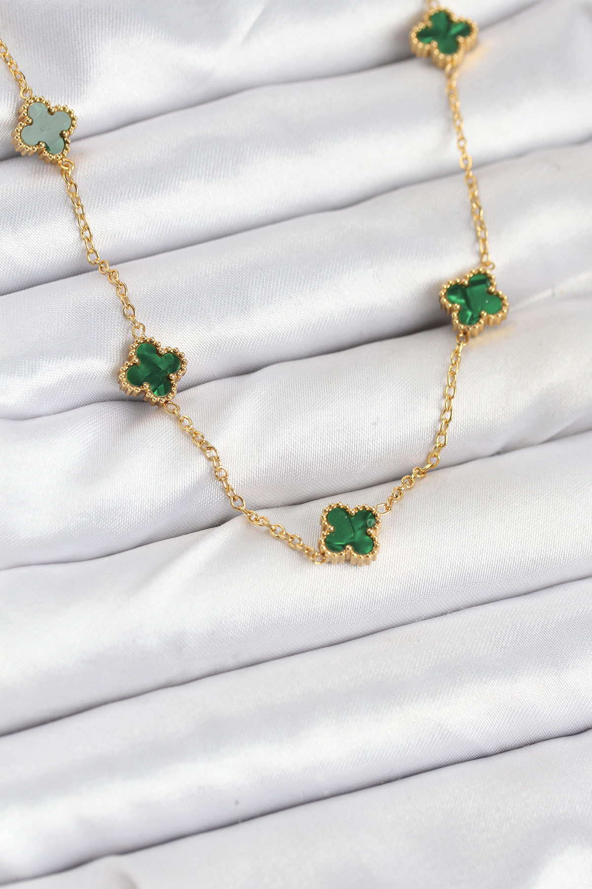 316L Çelik Zincir Gold Renk Yeşil Baby Boy Yonca Kadın Kolye - TJ-BKO10570
