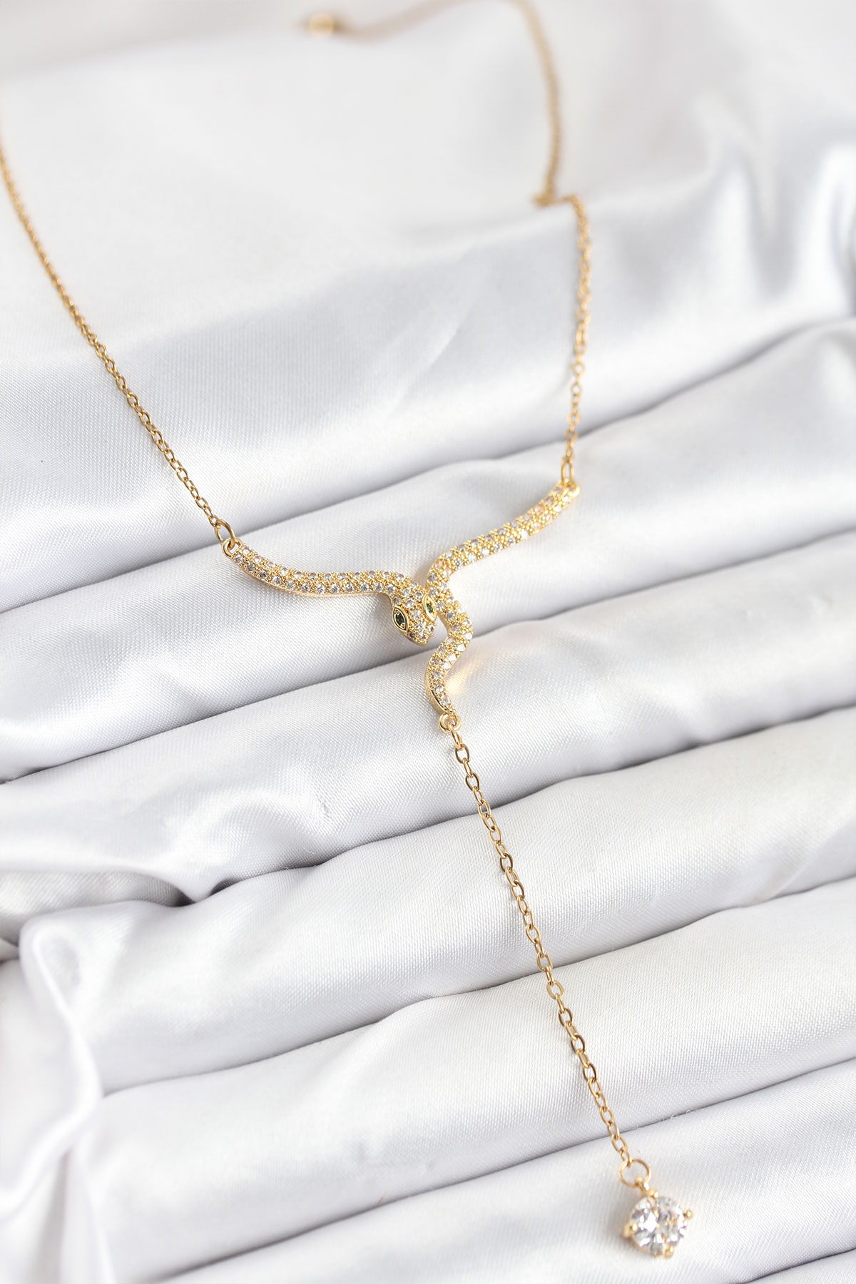 316L Çelik Zincir Gold Renk Yılan Model Y Kolye - TJ-BKO10662