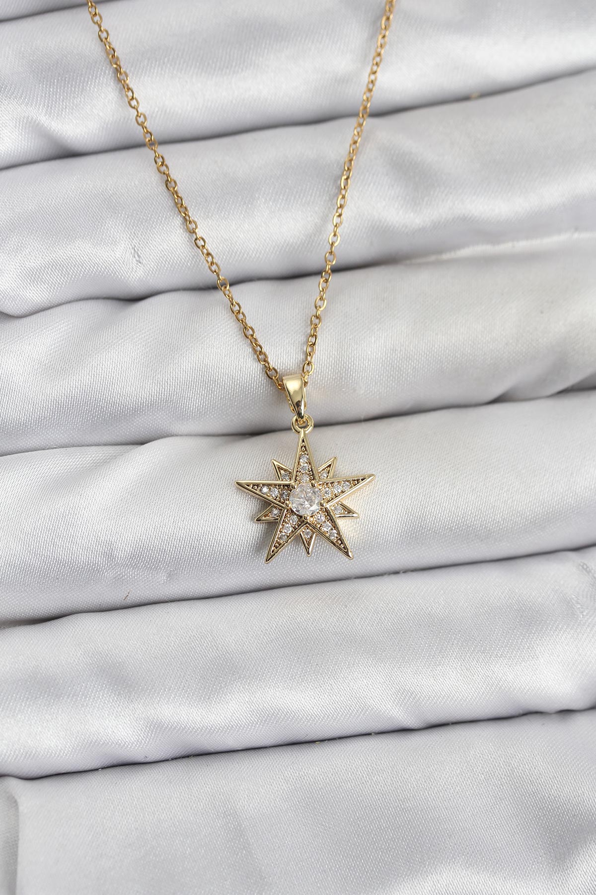 316L Çelik Zincir Gold Renk Yıldız Model Zirkon Taşlı Kadın Kolye - TJ-BKO10844