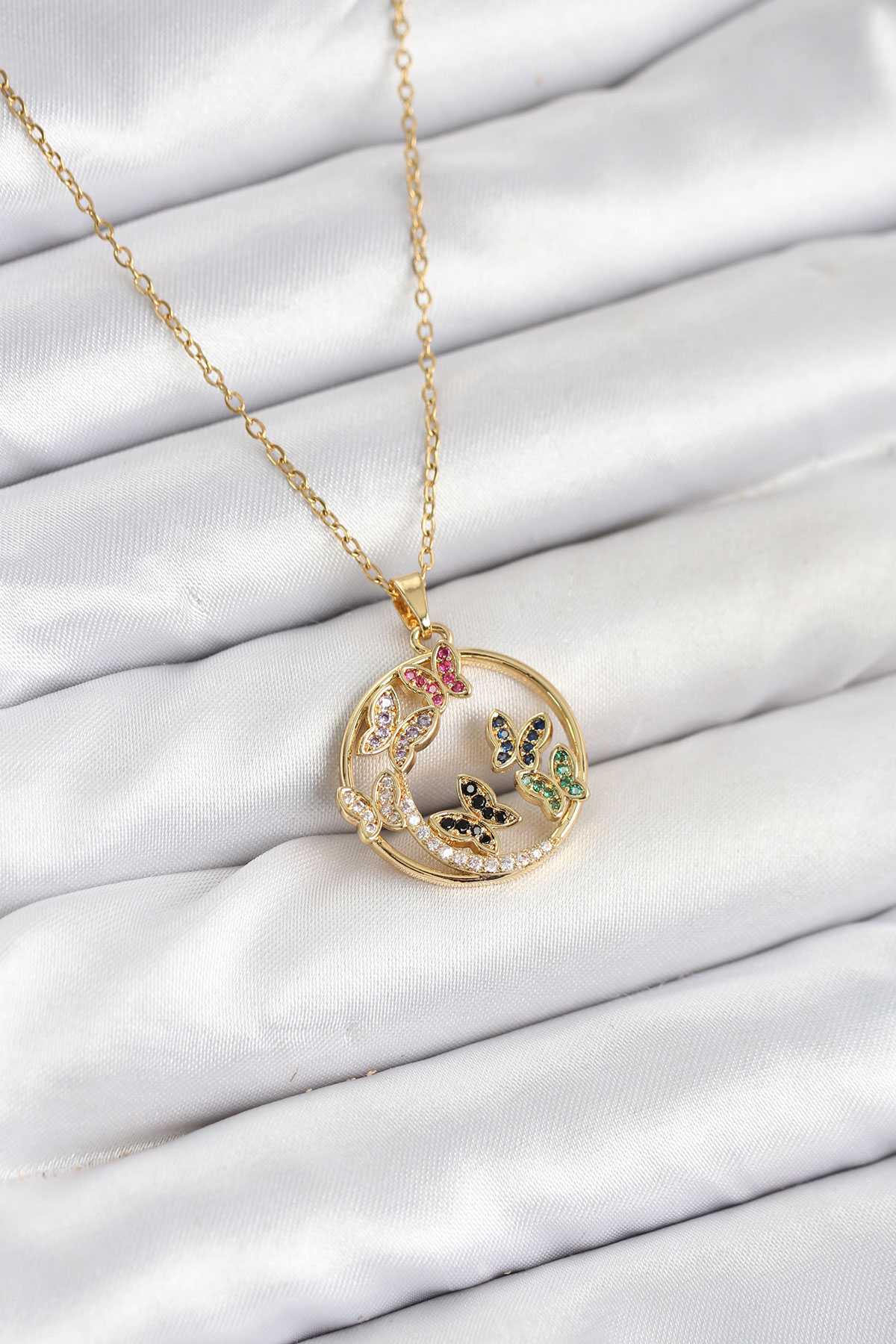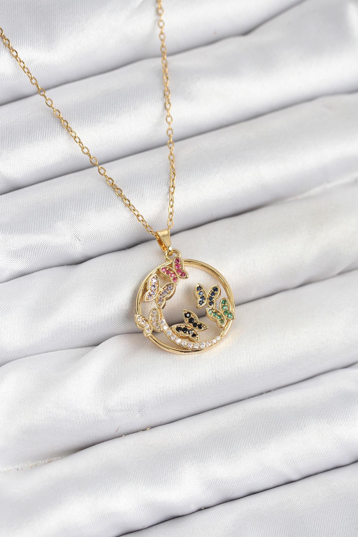 316L Çelik Zincir Gold Renk Zirkon Taşlı Kelebekli Kadın Kolye - TJ-BKO10609