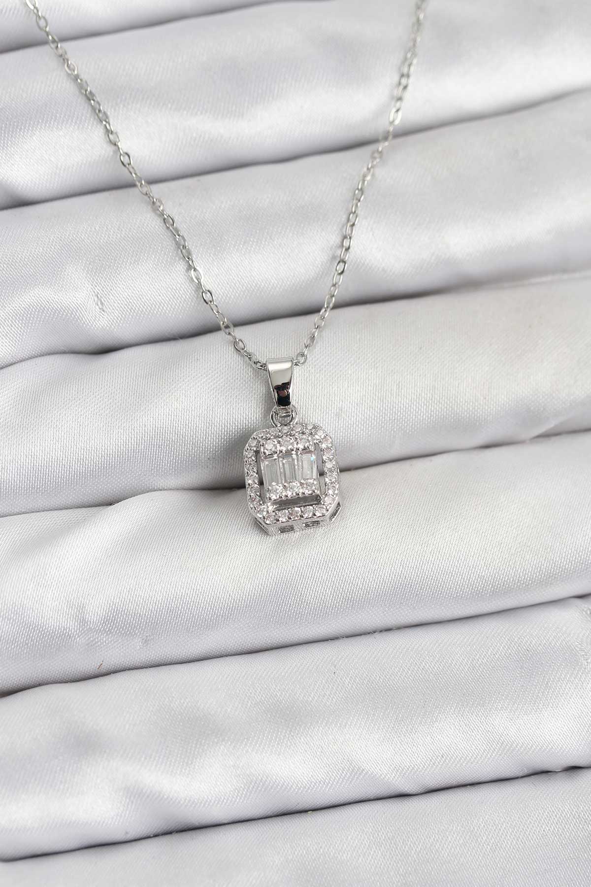 316L Çelik Zincir Gümüş Renk Baget Model Kadın Kolye - TJ-BKO10764