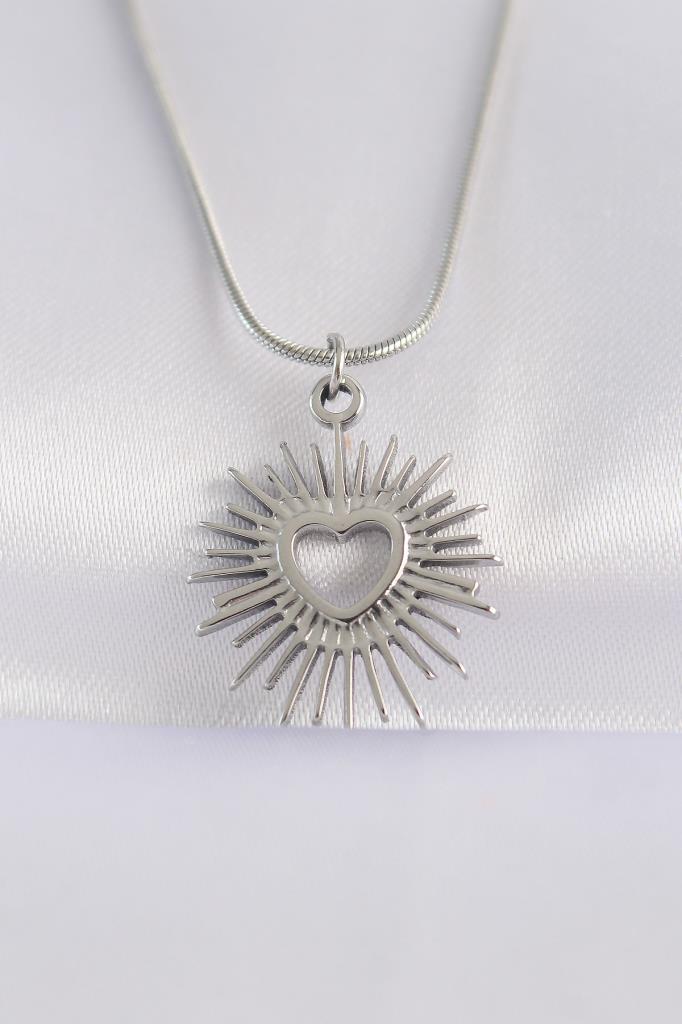 316L Çelik Zincir Gümüş Renk Kalp Güneşi Tasarımlı Kolye - TJ-BKO8658