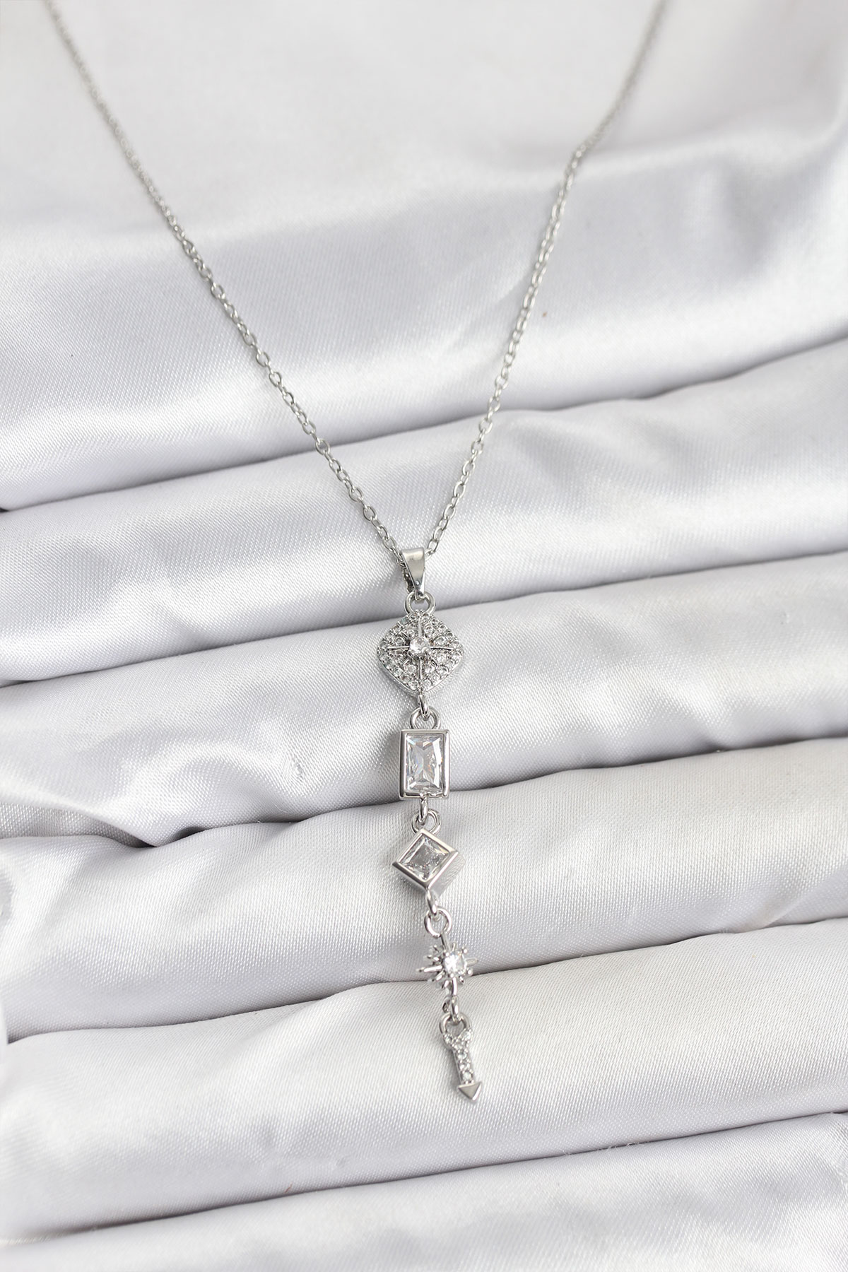 316L Çelik Zincir Gümüş Renk Kutup Yıldızı Enerji Model Kadın Y Kolye - TJ-BKO10673