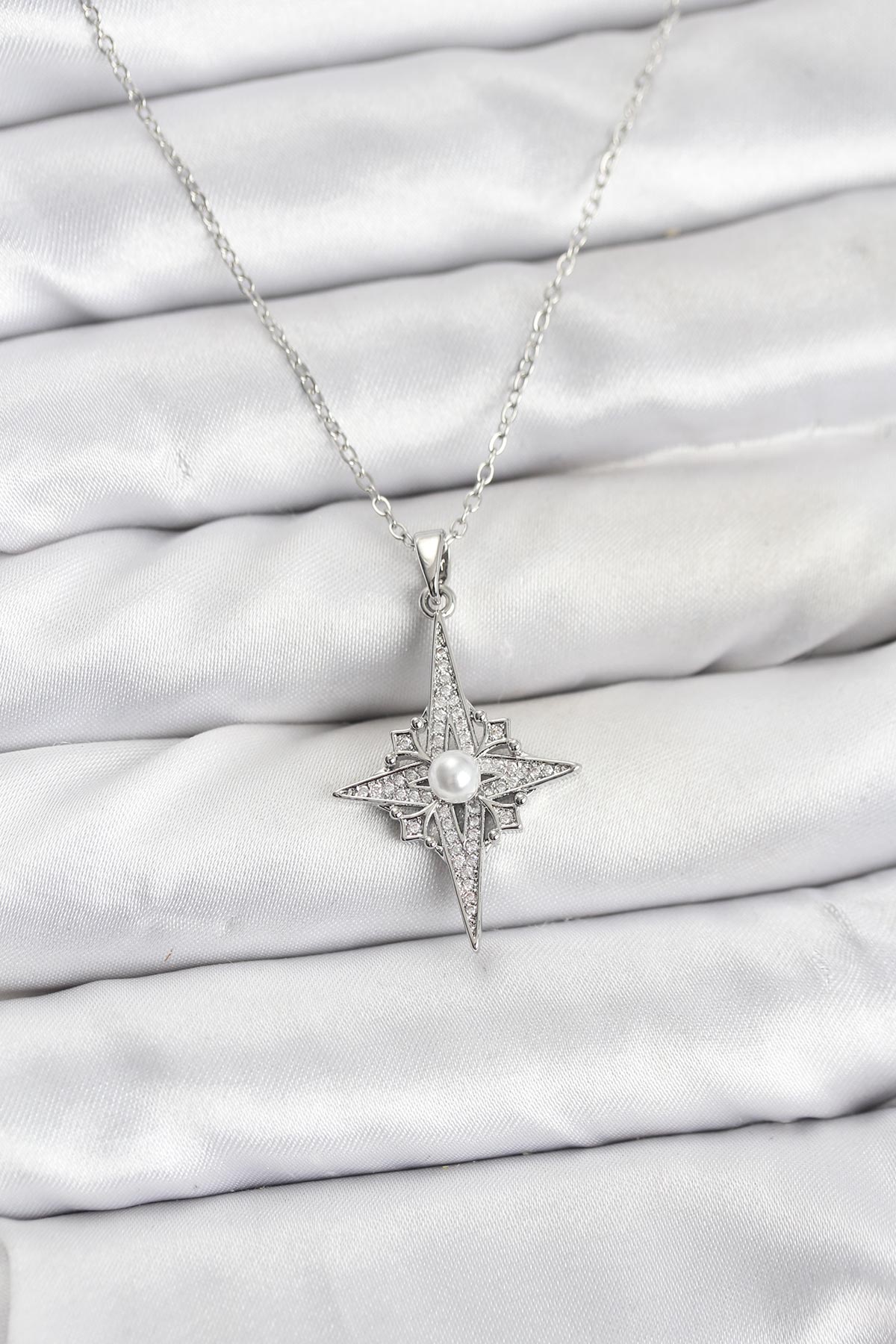 316L Çelik Zincir Gümüş Renk Kutup Yıldızı Model Zirkon Taşlı Kadın Kolye - TJ-BKO10892