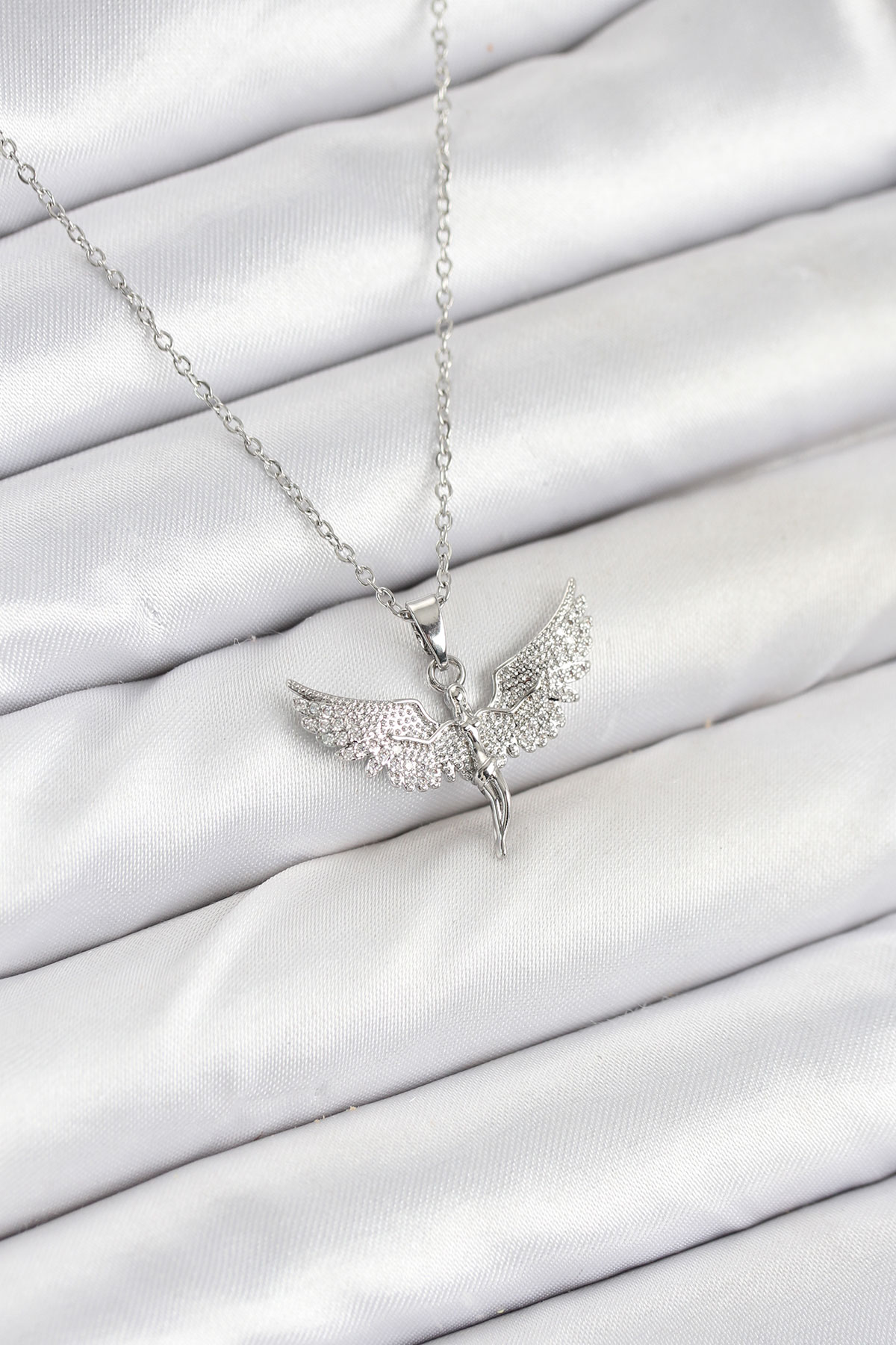 316L Çelik Zincir Gümüş Renk Melek Model Kadın Kolye - TJ-BKO10622