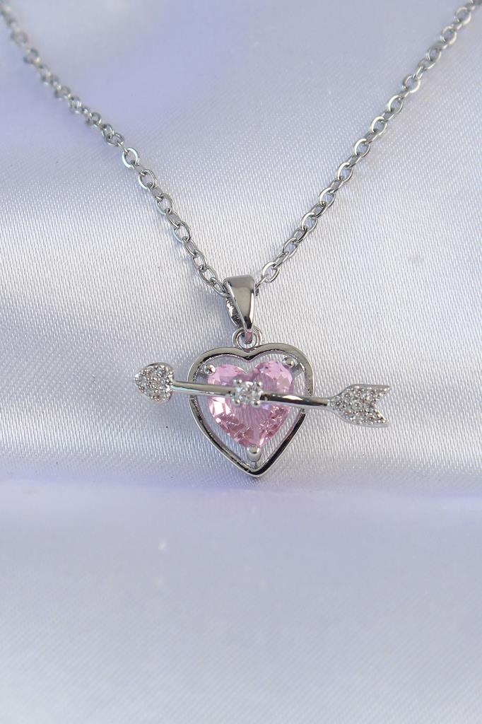 316L Çelik Zincir Gümüş Renk Pembe Zirkon Taşlı Eros Kolye - TJ-BKO8743