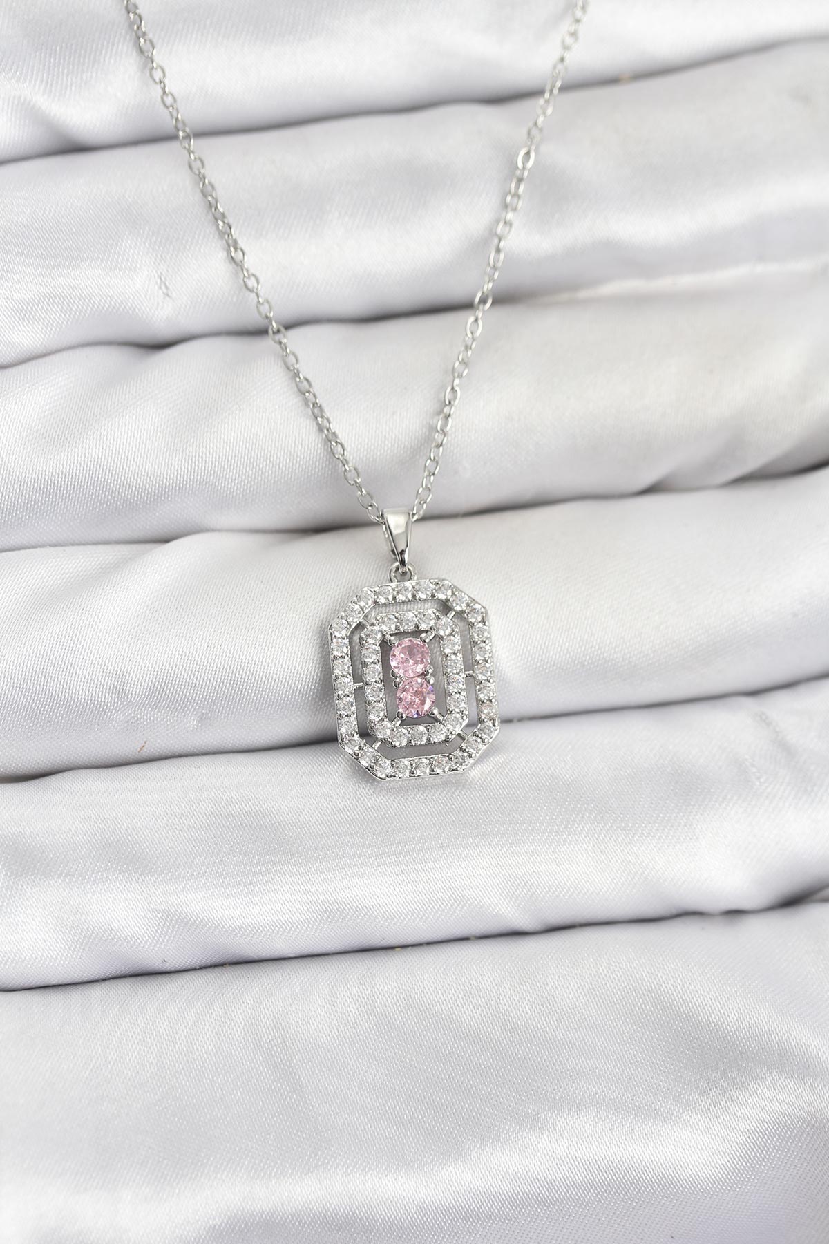 316L Çelik Zincir Gümüş Renk Plaka Model Zirkon Taşlı Kadın Kolye - TJ-BKO10859
