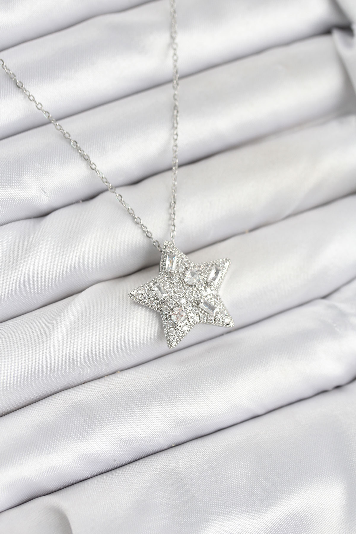 316L Çelik Zincir Gümüş Renk Yıldız Model Kadın Kolye - TJ-BKO10624