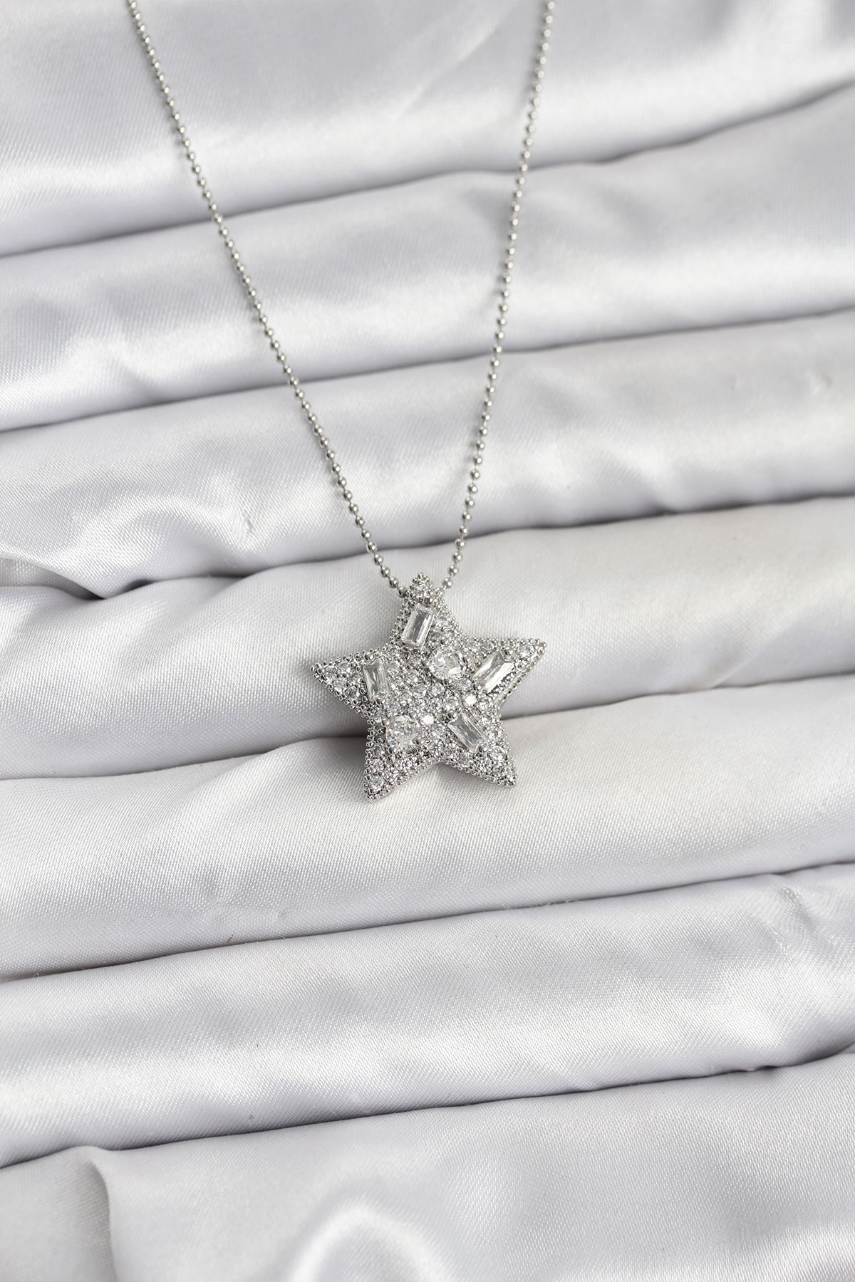 316L Çelik Zincir Gümüş Renk Zincirli Gümüş Yıldız Model Kadın Kolye - TJ-BKO10678