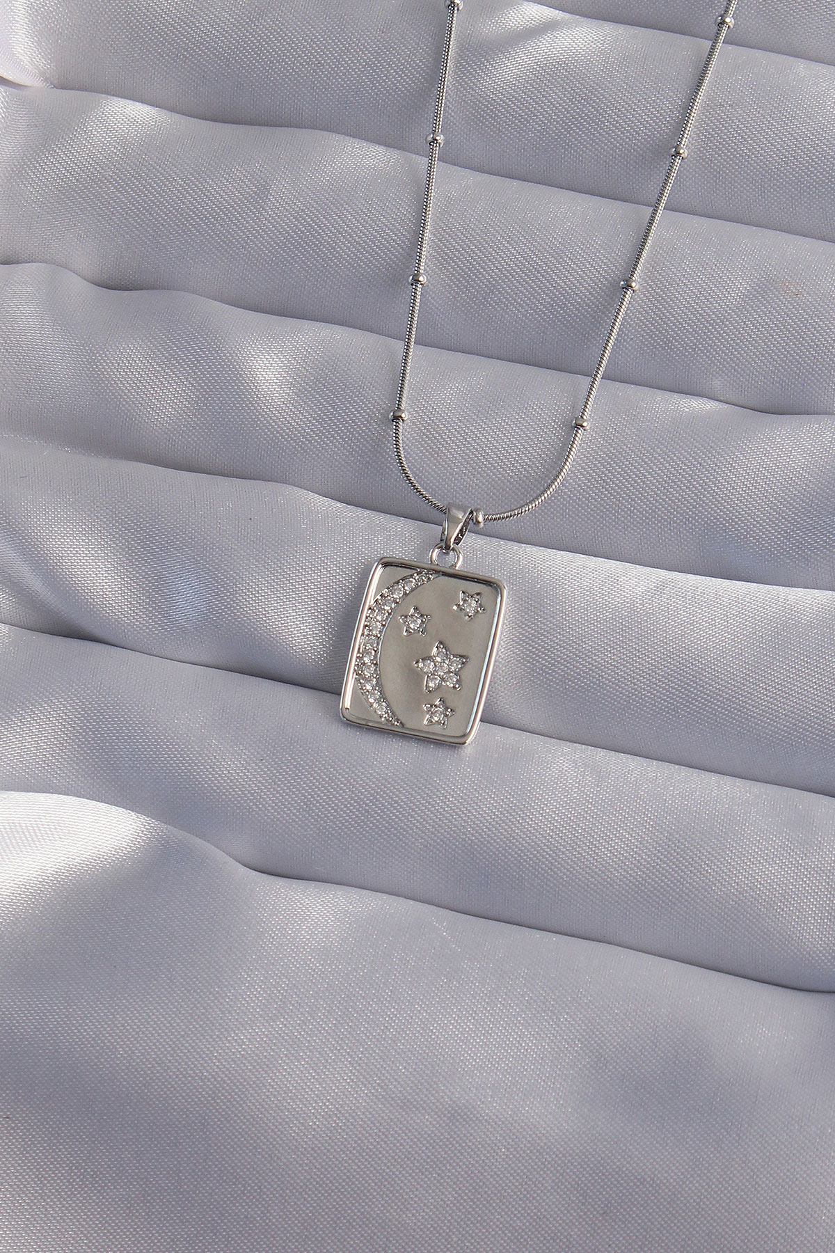 316L Çelik Zincir Gümüş Renk Zirkon Taşlı Ay Yıldız Figürlü Tarot Kolye - TJ-BKO9022
