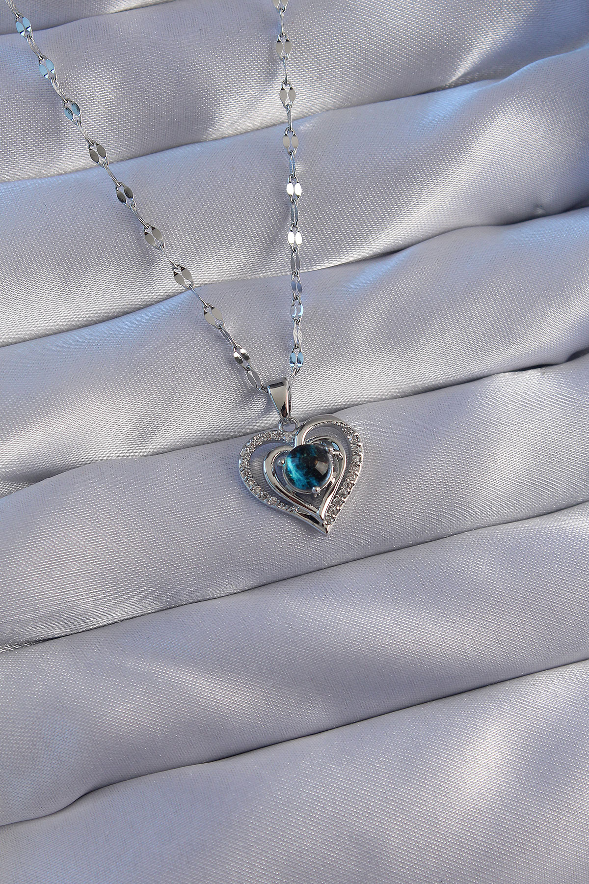 316L Çelik Zincir Gümüş Renk Zirkon Taşlı Kalp Figürlü Gezegen Kolye - TJ-BKO8825