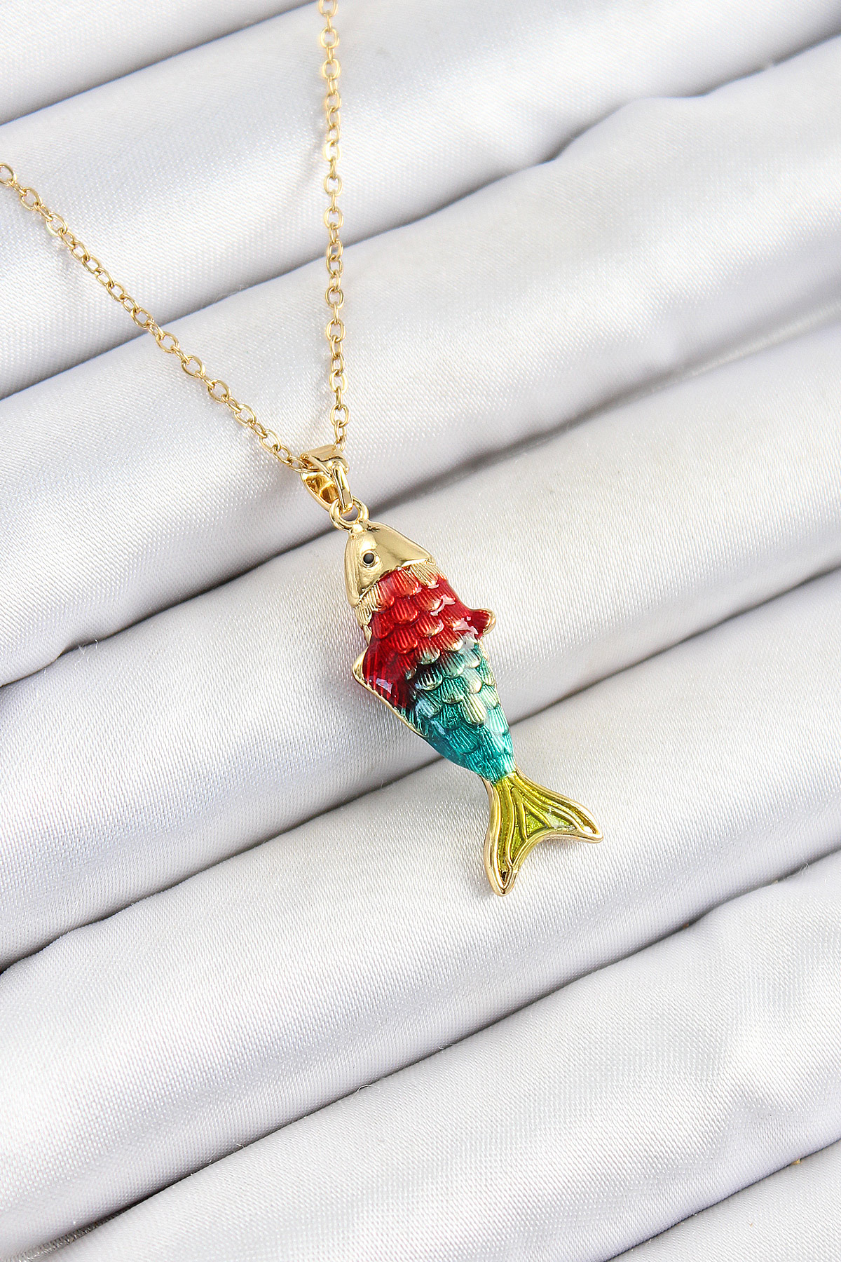316L Çelik Zincir Karışık Renk Balık Model Gold Kadın Kolye - TJ-BKO10326