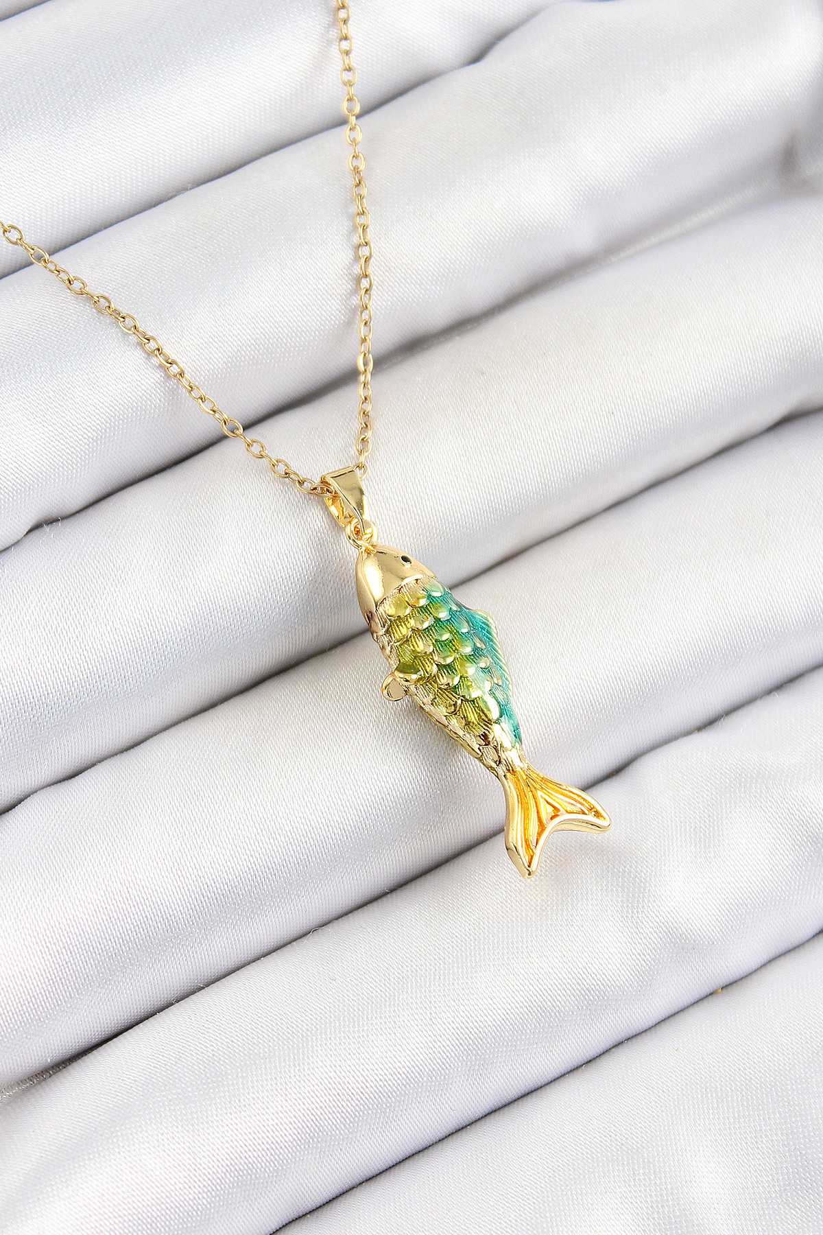 316L Çelik Zincir Karışık Renk Balık Model Gold Kadın Kolye - TJ-BKO10327